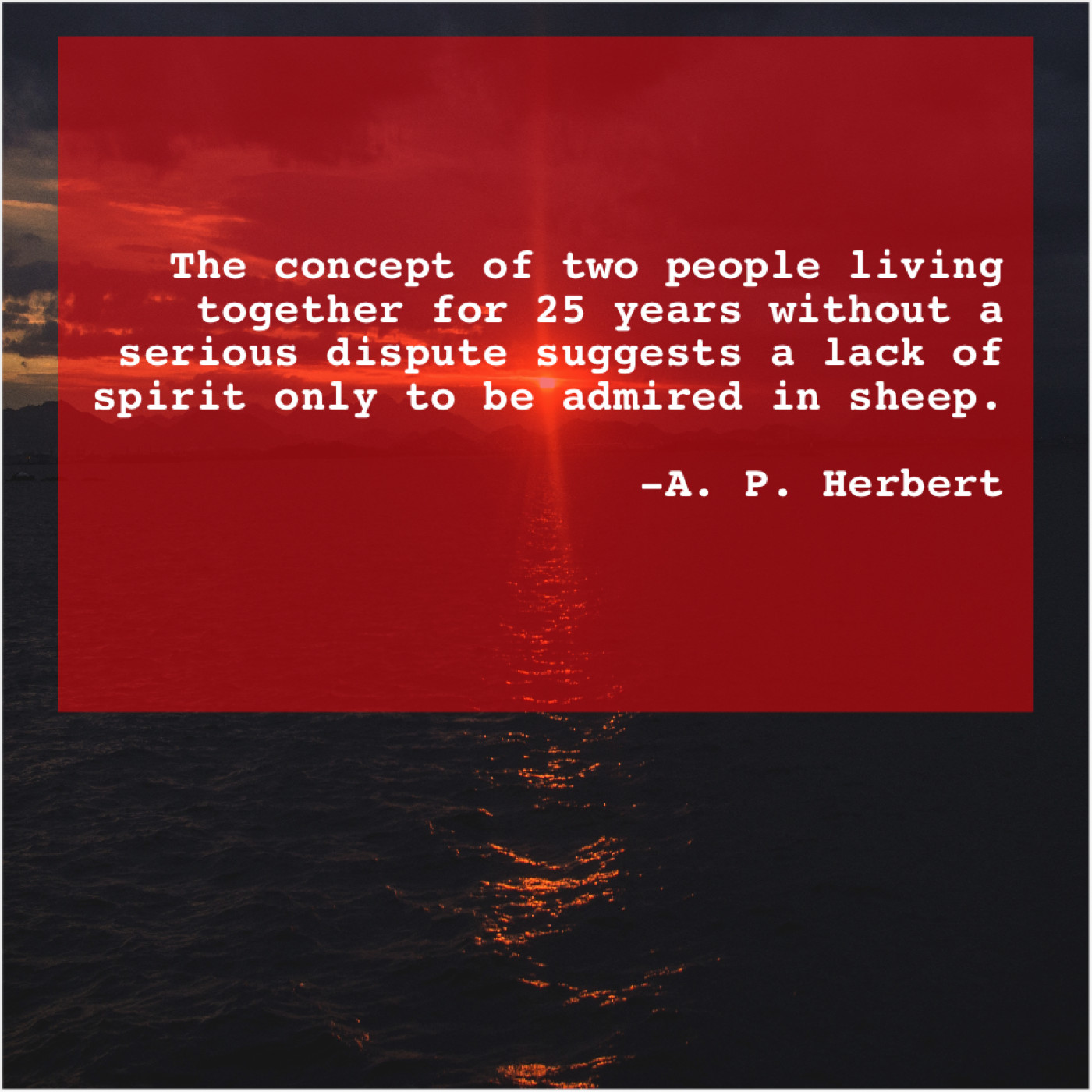 A. P. Herbert A. P. Herbert – The concept of two people… January 19, 2019 admin “The concept of two people living together for 25 years without a serious dispute suggests a lack of spirit only to be admired in sheep.”-A. P. Herbert