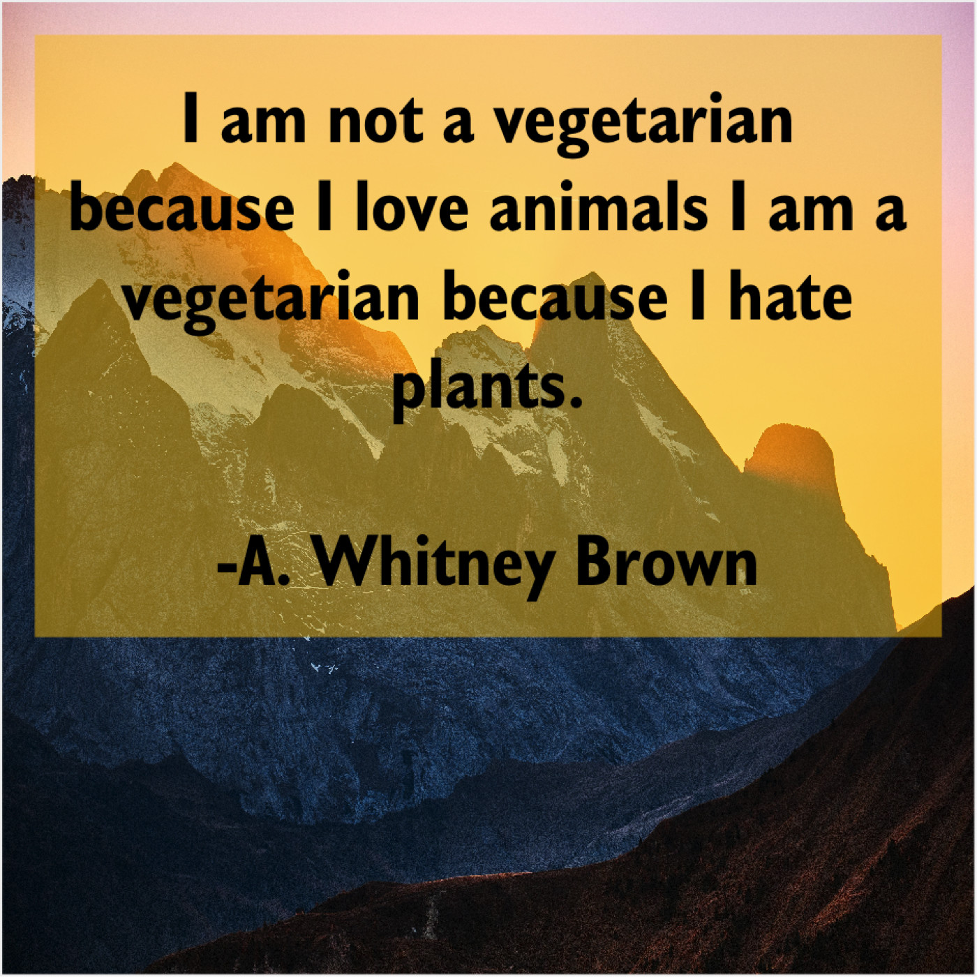 A. Whitney Brown A. Whitney Brown – I am not a vegetarian… November 11, 2018 admin “I am not a vegetarian because I love animals I am a vegetarian because I hate plants.”-A. Whitney Brown