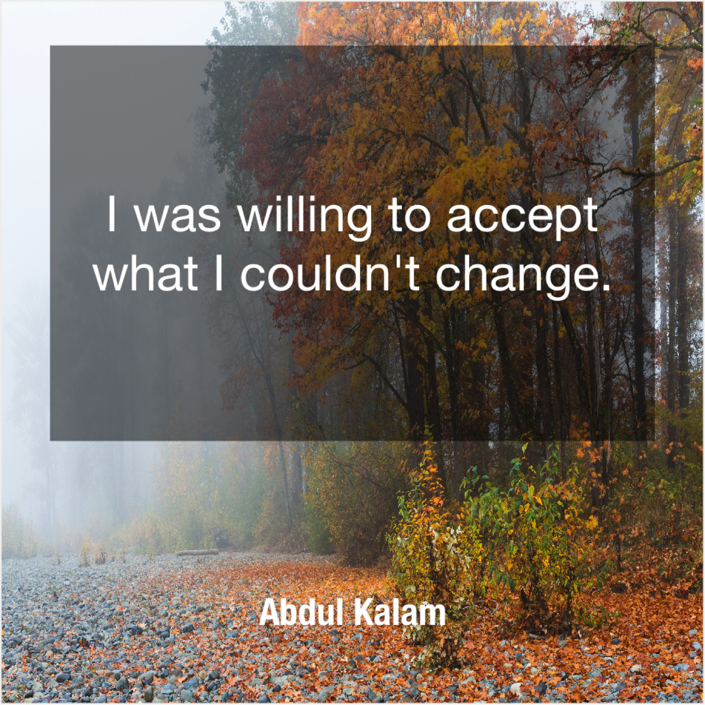 Abdul Kalam Abdul Kalam – I was willing to accept… April 13, 2019 admin “I was willing to accept what I couldn’t change.”-Abdul Kalam