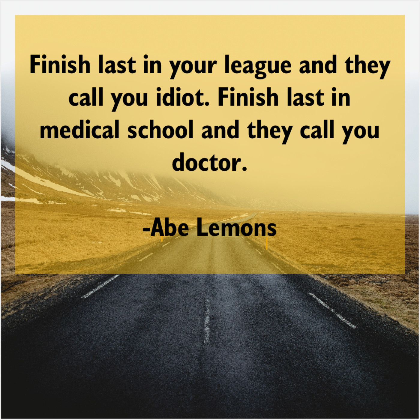Abe Lemons Abe Lemons – Finish last in your league… October 2, 2019 admin “Finish last in your league and they call you idiot. Finish last in medical school and they call you doctor.”-Abe Lemons