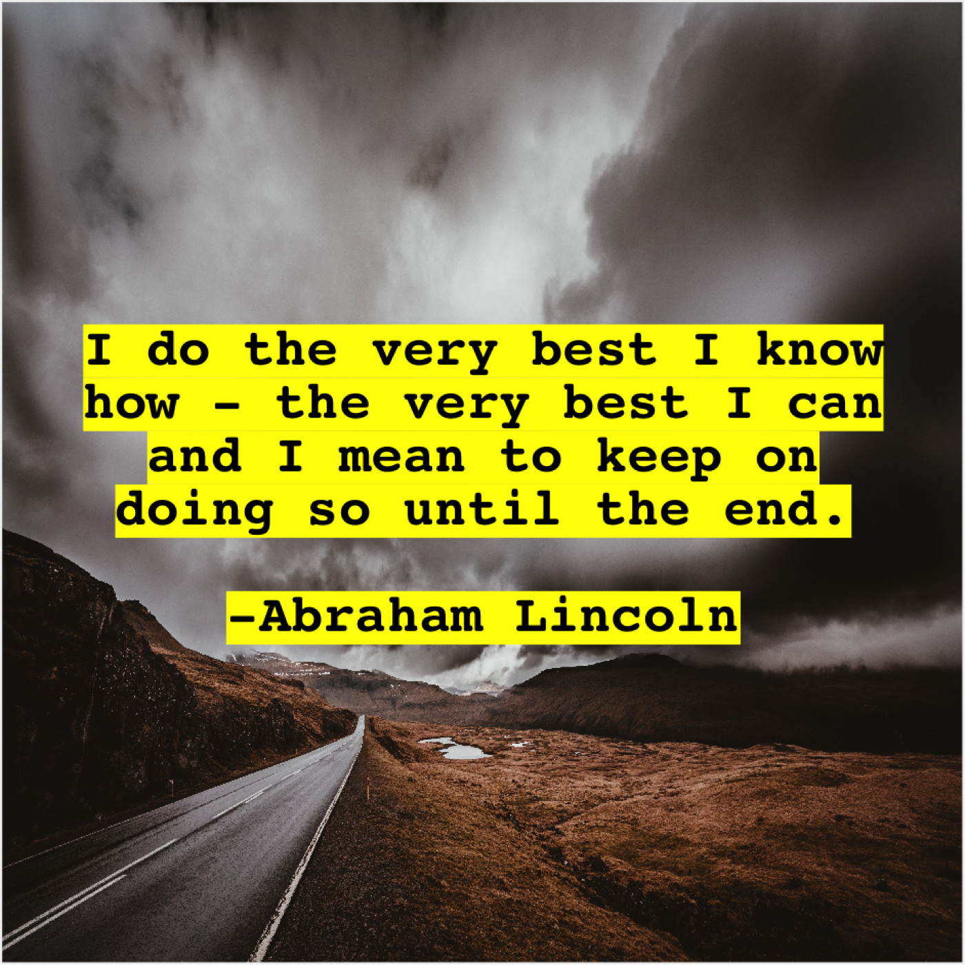 Abraham Lincoln Abraham Lincoln – I do the very best… February 1, 2019 admin “I do the very best I know how – the very best I can and I mean to keep on doing so until the end.”-Abraham Lincoln