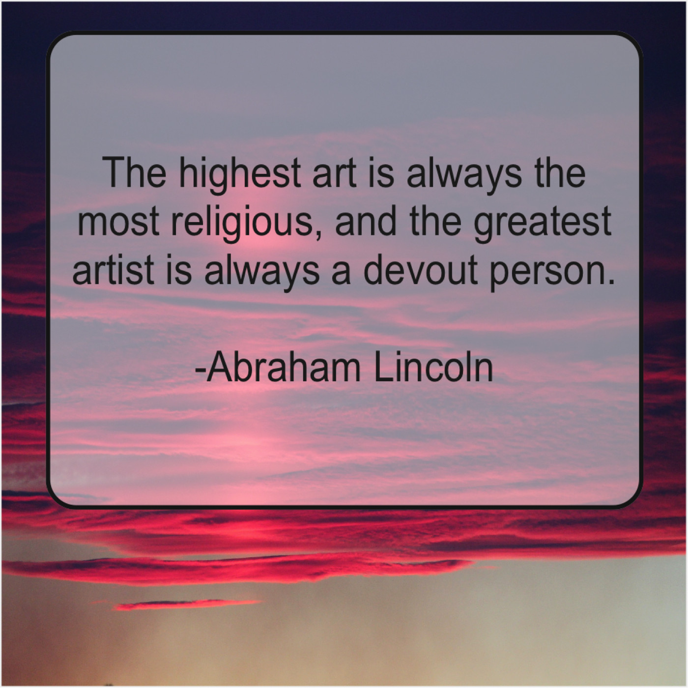 Abraham Lincoln Abraham Lincoln – The highest art is always… August 8, 2019 admin “The highest art is always the most religious, and the greatest artist is always a devout person.”-Abraham Lincoln