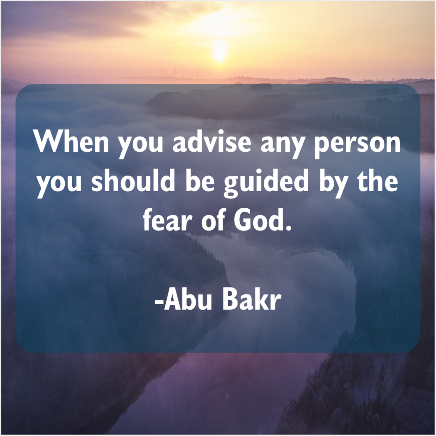 Abu Bakr Abu Bakr – When you advise any person… July 29, 2019 admin “When you advise any person you should be guided by the fear of God.”-Abu Bakr