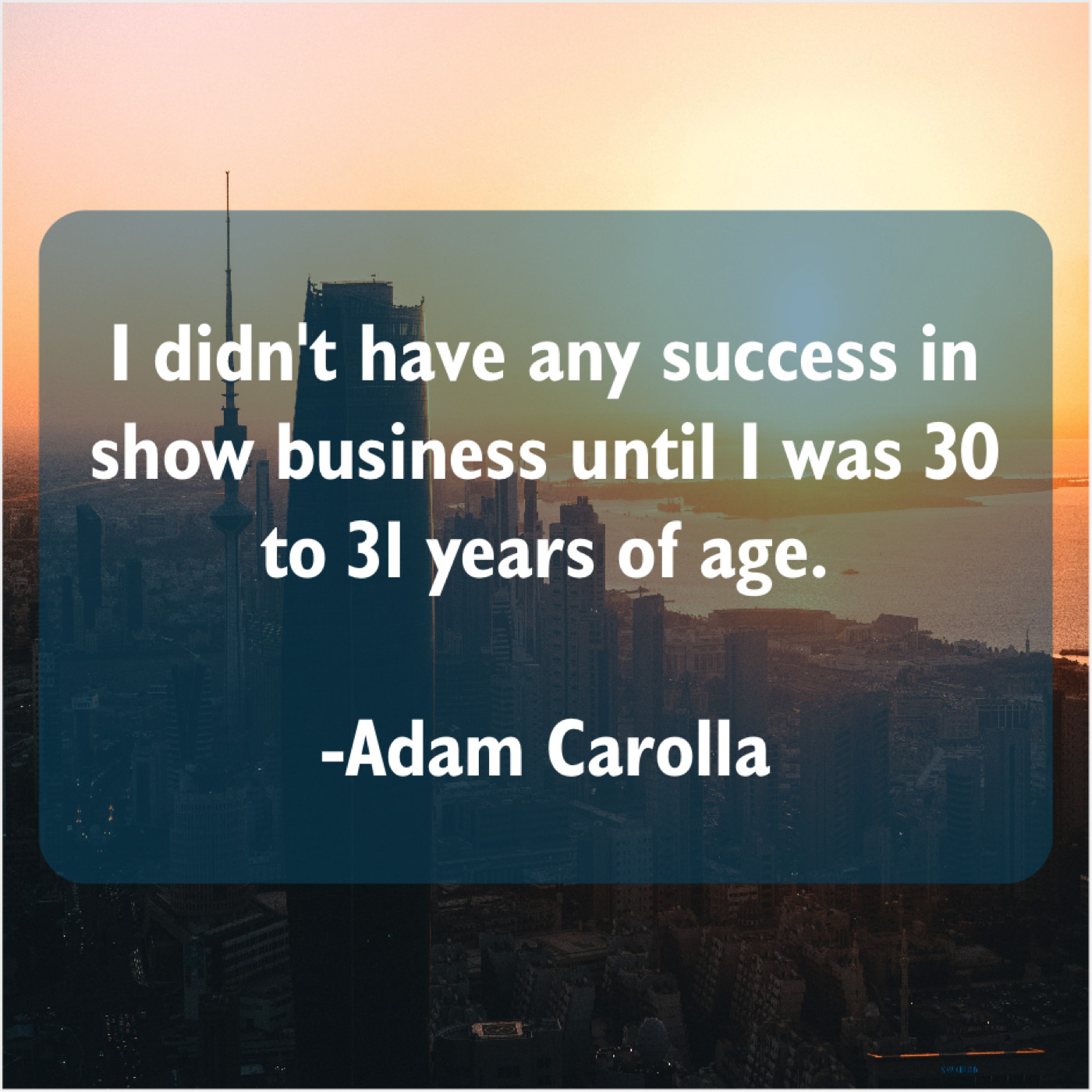 Adam Carolla Adam Carolla – I didn’t have any success… April 7, 2019 admin “I didn’t have any success in show business until I was 30 to 31 years of age.”-Adam Carolla