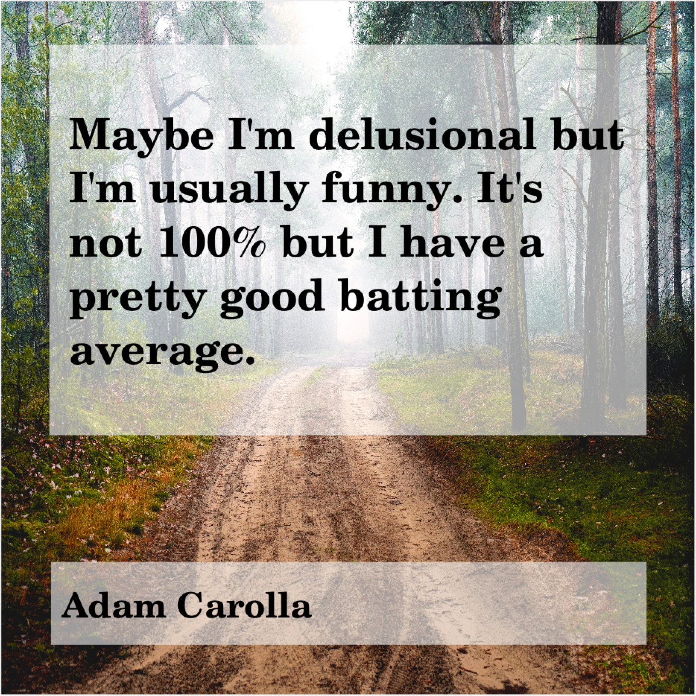 Adam Carolla Adam Carolla – Maybe I’m delusional but I’m… February 14, 2019 admin “Maybe I’m delusional but I’m usually funny. It’s not 100% but I have a pretty good batting average.”-Adam Carolla