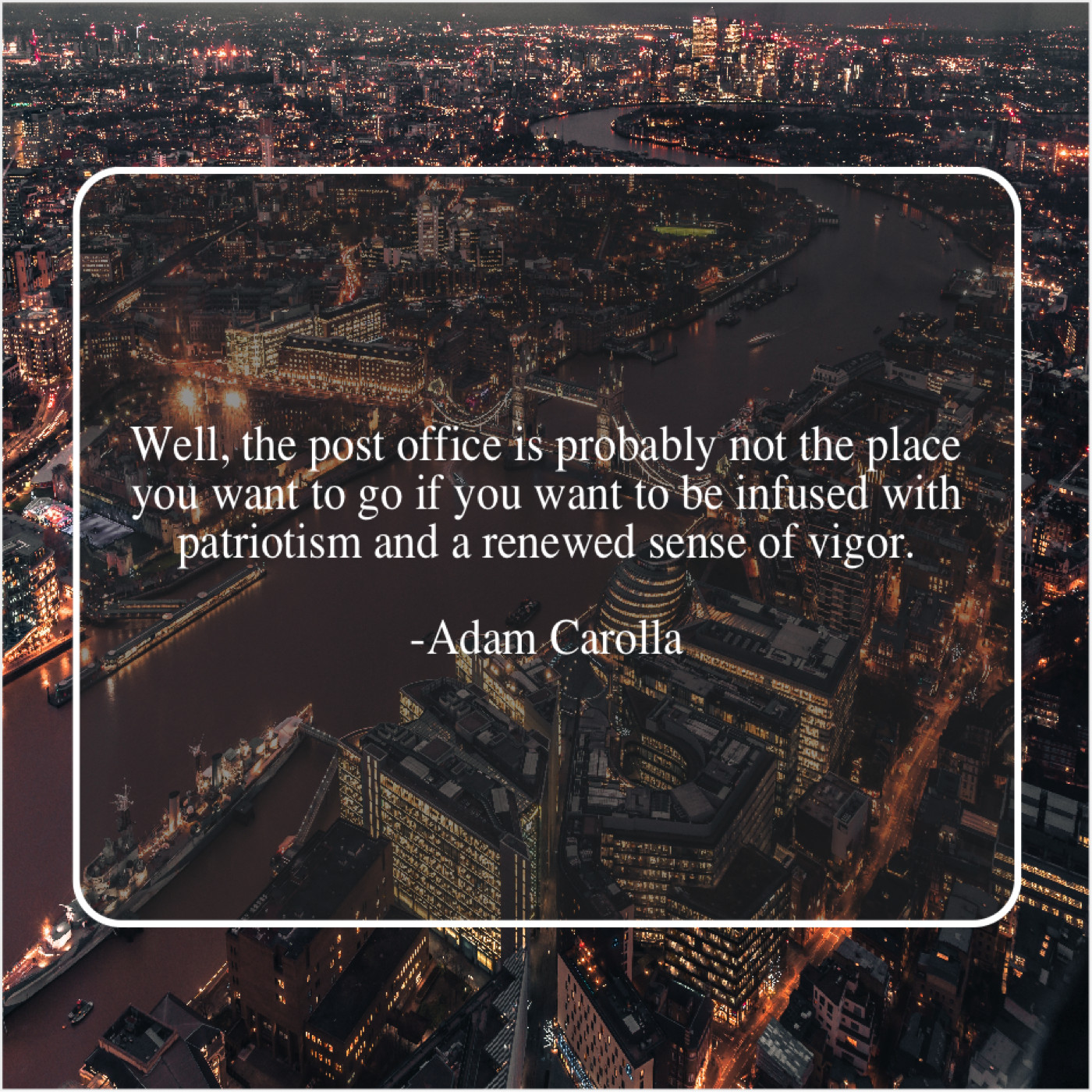 “Well, the post office is probably not the place you want to go if you want to be infused with patriotism and a renewed sense of vigor.”