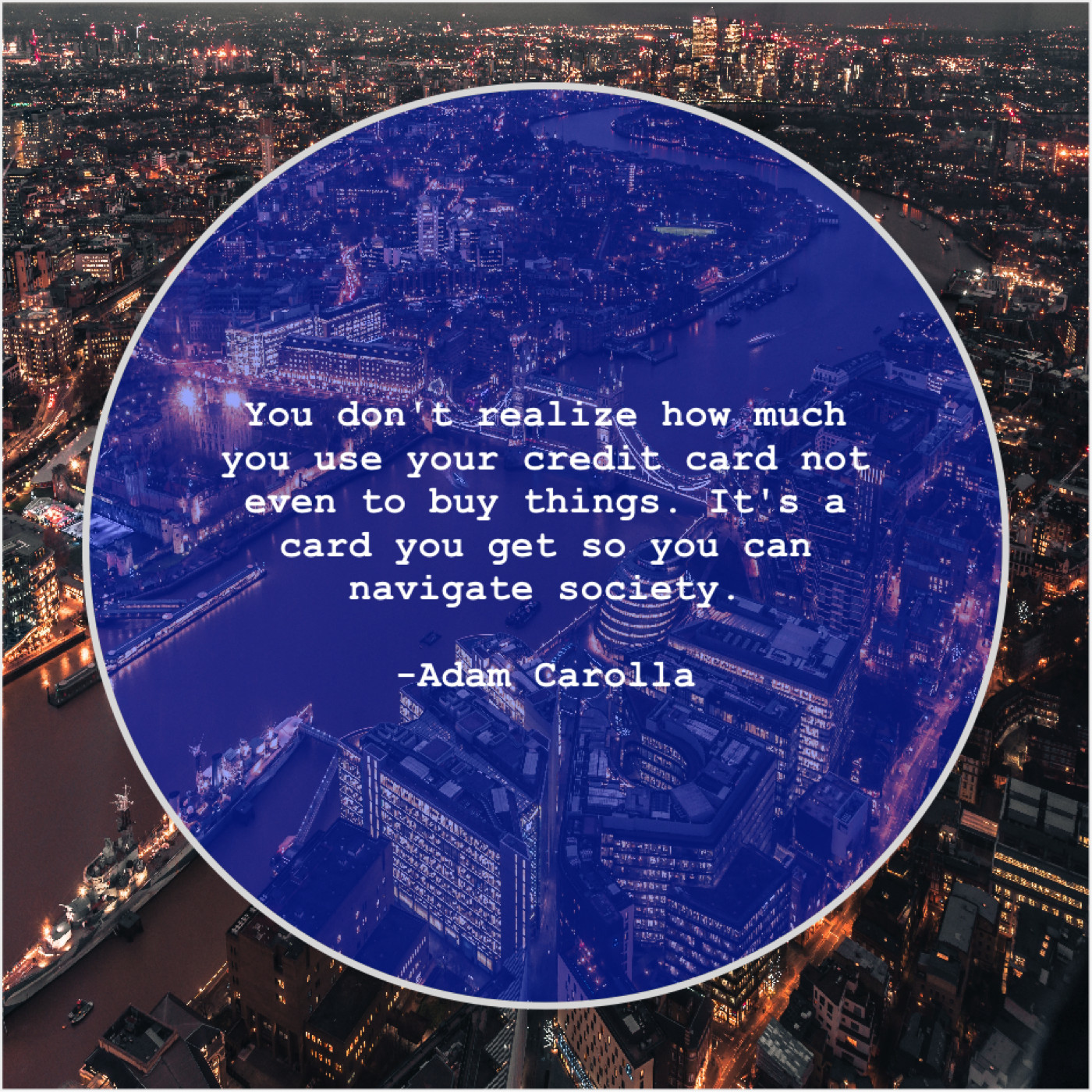 Adam Carolla Adam Carolla – You don’t realize how much… November 16, 2018 admin “You don’t realize how much you use your credit card not even to buy things. It’s a card you get so you can navigate society.”-Adam Carolla