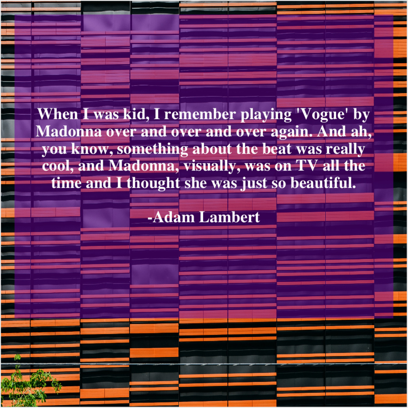 Adam Lambert Adam Lambert – When I was kid, I… February 14, 2019 admin “When I was kid, I remember playing ‘Vogue’ by Madonna over and over and over again. And ah, you know, something about the beat was really cool, and Madonna, visually, was on TV all the time and I thought she was just so beautiful.”-Adam Lambert