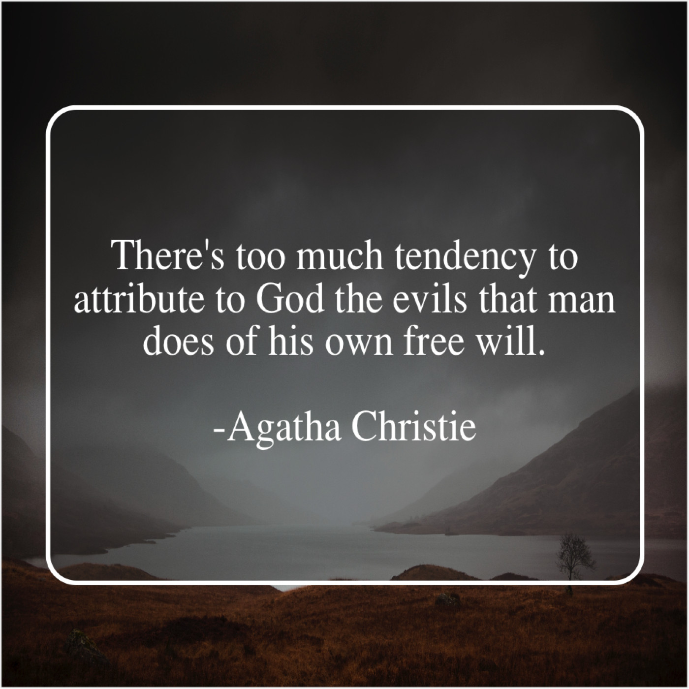 Agatha Christie Agatha Christie – There’s too much tendency to… October 5, 2019 admin “There’s too much tendency to attribute to God the evils that man does of his own free will.”-Agatha Christie