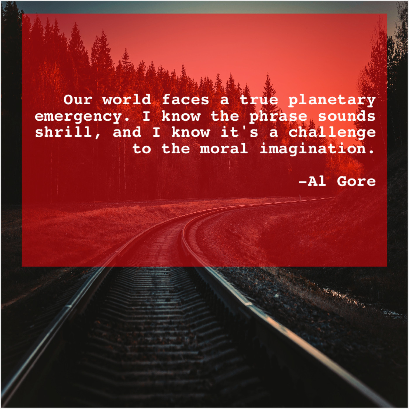 Al Gore Al Gore – Our world faces a true… January 26, 2019 admin “Our world faces a true planetary emergency. I know the phrase sounds shrill, and I know it’s a challenge to the moral imagination.”-Al Gore