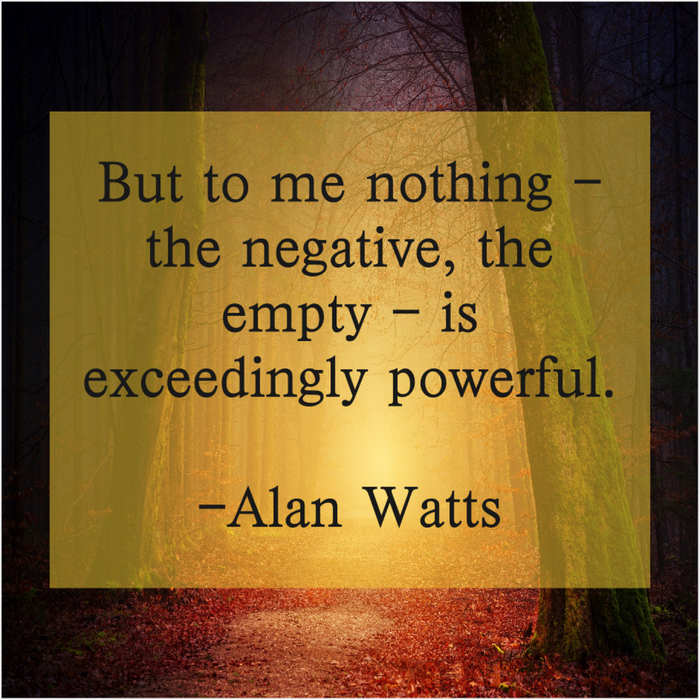 Alan Watts Alan Watts – But to me nothing – the… October 14, 2019 admin “But to me nothing – the negative, the empty – is exceedingly powerful.”-Alan Watts