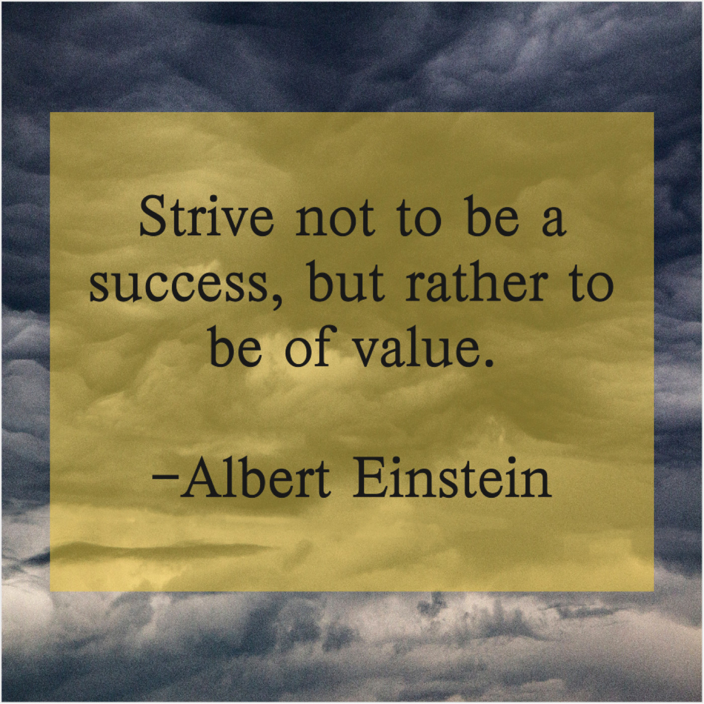 Albert Einstein Albert Einstein – Strive not to be a… October 4, 2019 admin “Strive not to be a success, but rather to be of value.”-Albert Einstein