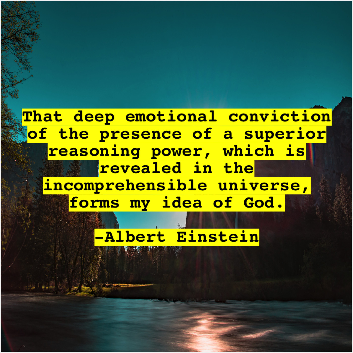 Albert Einstein Albert Einstein – That deep emotional conviction of… July 26, 2019 admin “That deep emotional conviction of the presence of a superior reasoning power, which is revealed in the incomprehensible universe, forms my idea of God.”-Albert Einstein