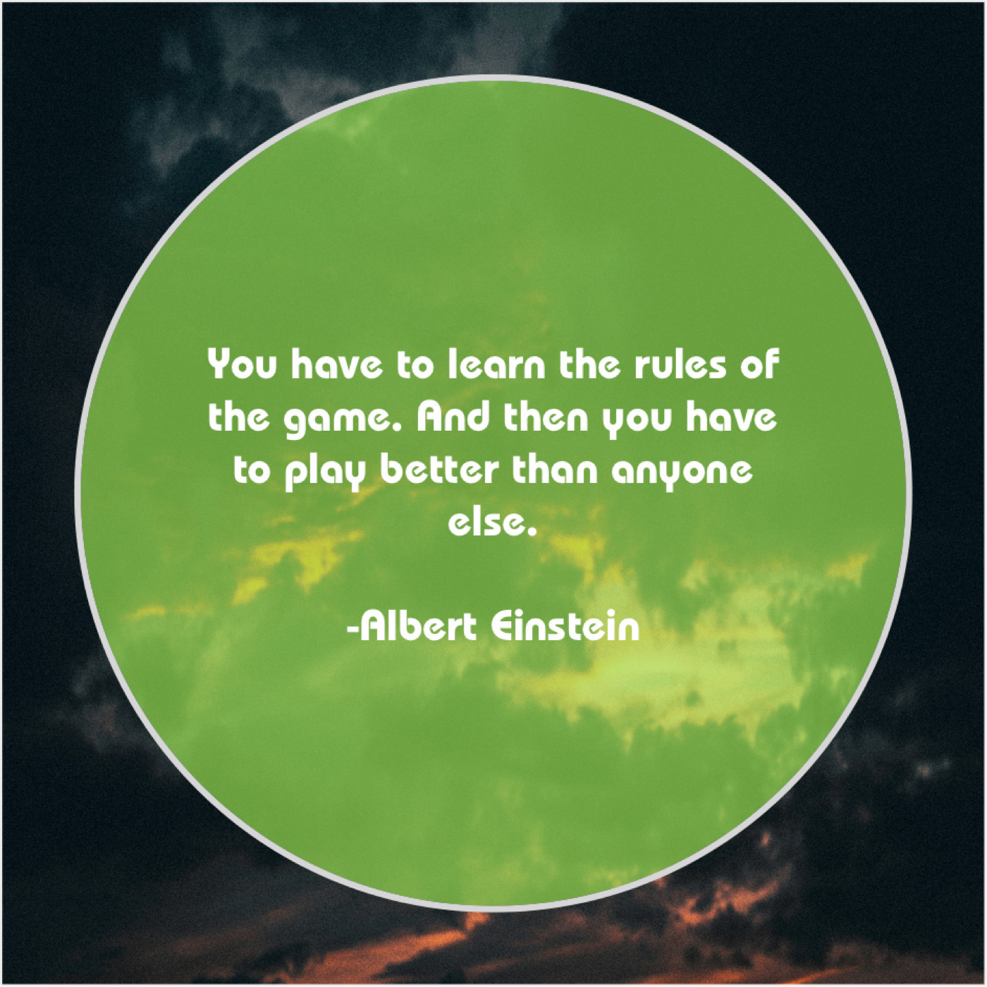 Albert Einstein Albert Einstein – You have to learn the… April 12, 2019 admin “You have to learn the rules of the game. And then you have to play better than anyone else.”-Albert Einstein