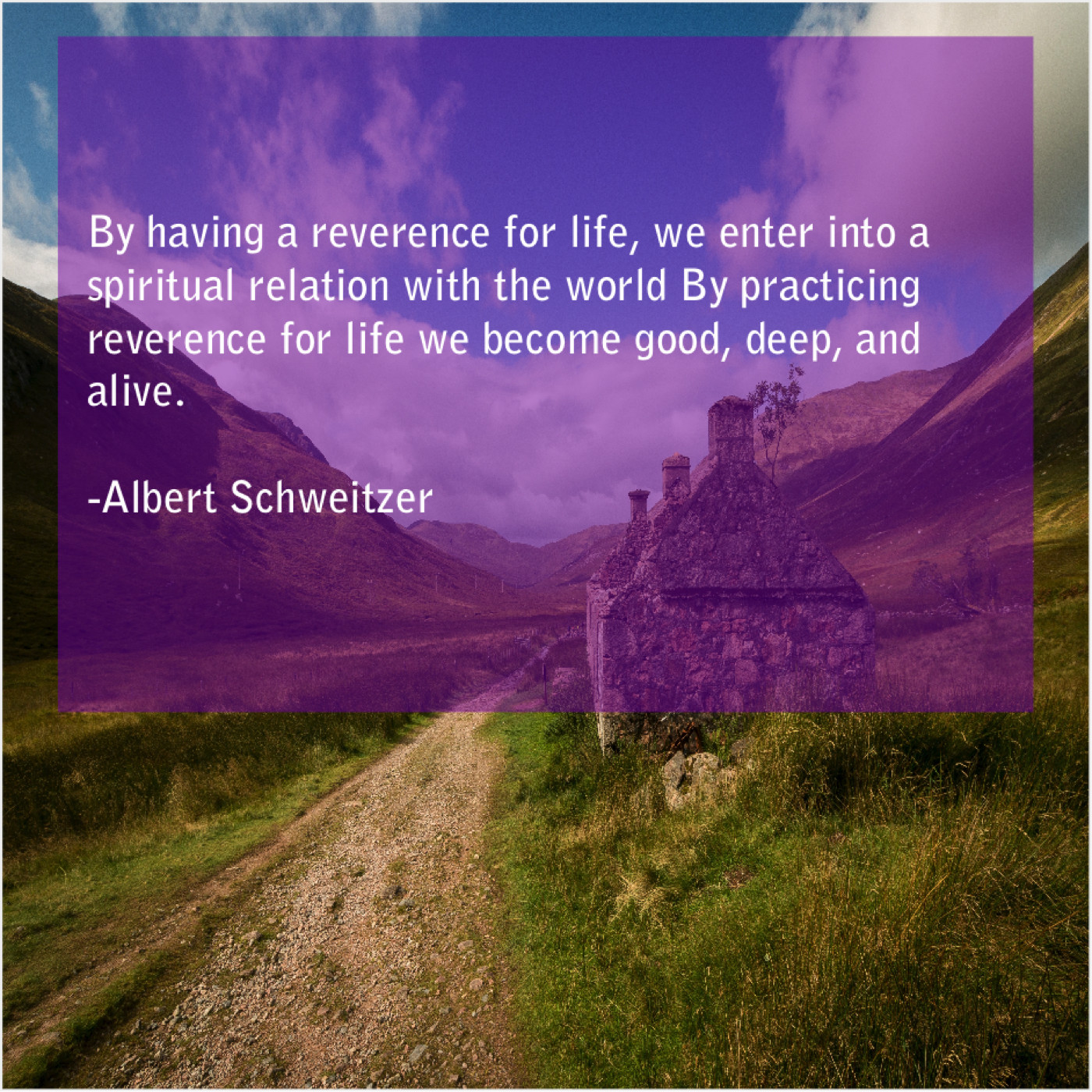 Albert Schweitzer Albert Schweitzer – By having a reverence for… July 6, 2019 admin “By having a reverence for life, we enter into a spiritual relation with the world By practicing reverence for life we become good, deep, and alive.”-Albert Schweitzer