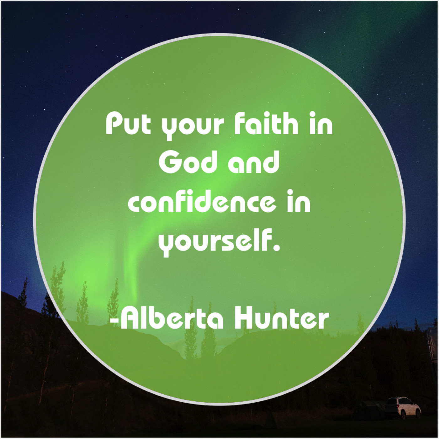 Alberta Hunter Alberta Hunter – Put your faith in God… October 11, 2019 admin “Put your faith in God and confidence in yourself.”-Alberta Hunter