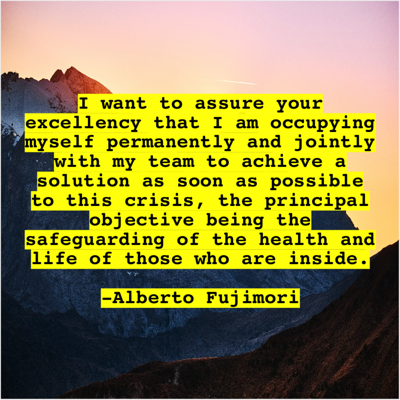 “I want to assure your excellency that I am occupying myself permanently and jointly with my team to achieve a solution as soon as possible to this crisis, the principal objective being the safeguarding of the health and life of those who are inside.”
