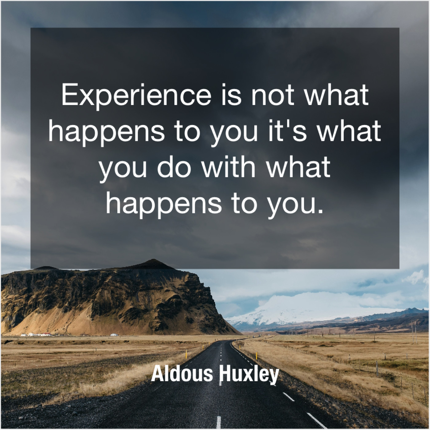 Aldous Huxley Aldous Huxley – Experience is not what happens… February 16, 2019 admin “Experience is not what happens to you it’s what you do with what happens to you.”-Aldous Huxley