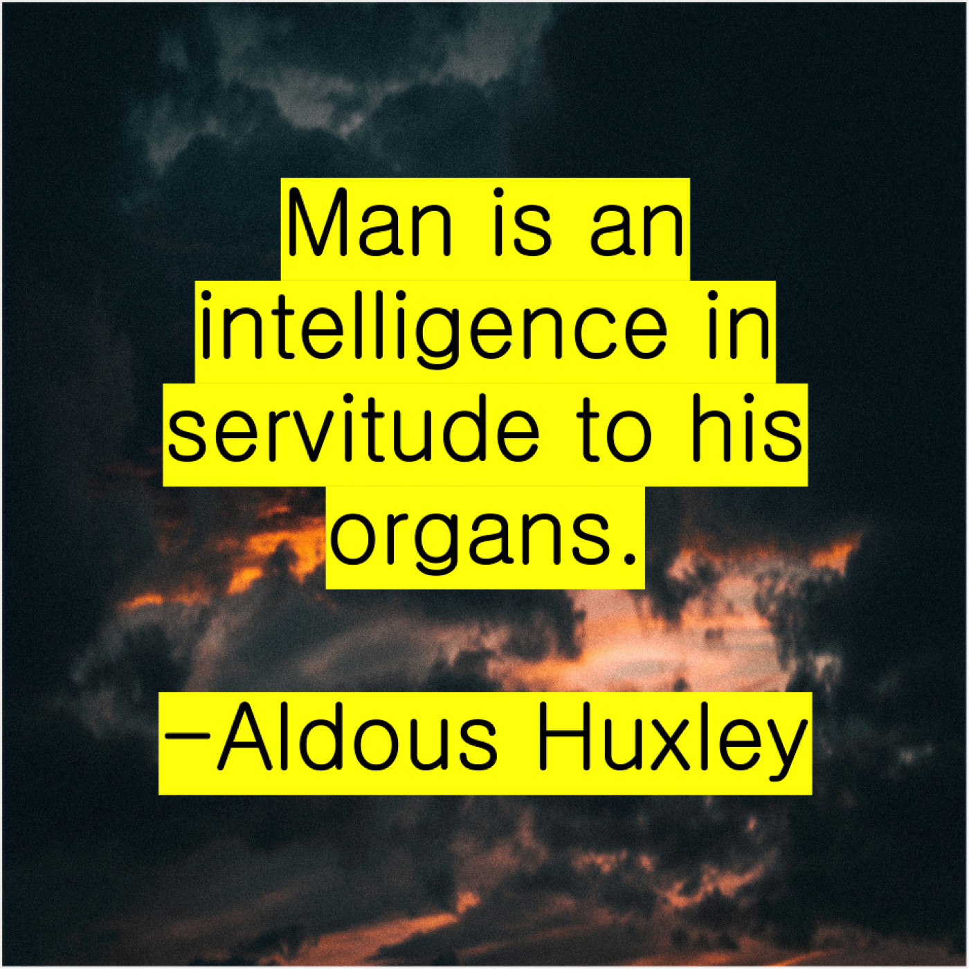 Aldous Huxley Aldous Huxley – Man is an intelligence in… September 12, 2019 admin “Man is an intelligence in servitude to his organs.”-Aldous Huxley