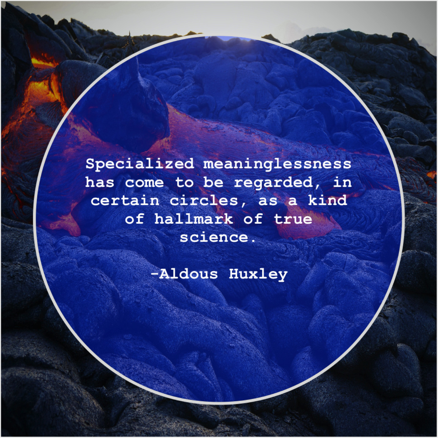 Aldous Huxley Aldous Huxley – Specialized meaninglessness has come to… November 23, 2018 admin “Specialized meaninglessness has come to be regarded, in certain circles, as a kind of hallmark of true science.”-Aldous Huxley