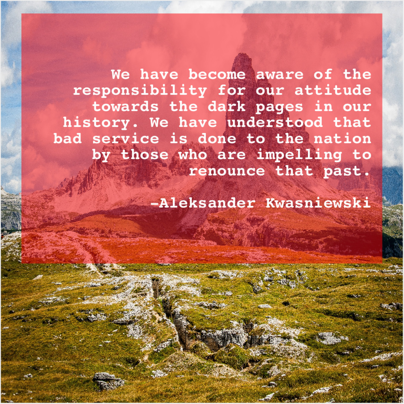 “We have become aware of the responsibility for our attitude towards the dark pages in our history. We have understood that bad service is done to the nation by those who are impelling to renounce that past.”
