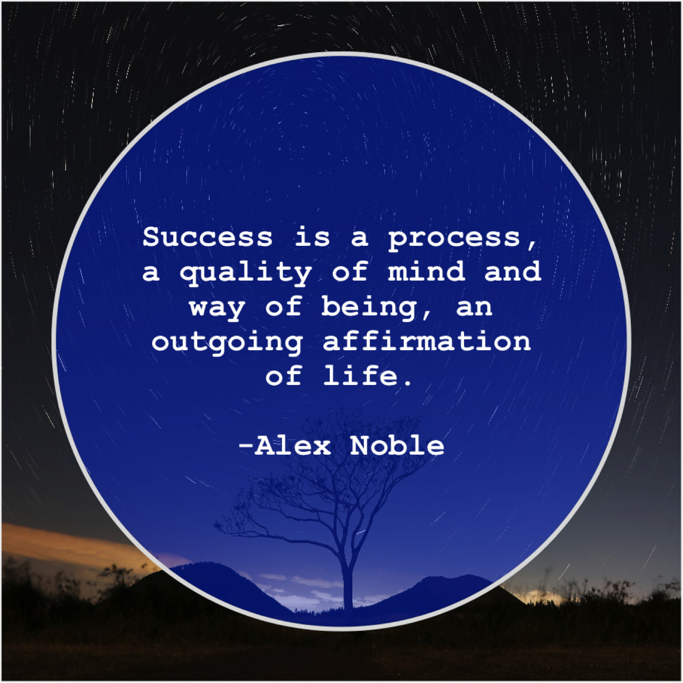 Alex Noble Alex Noble – Success is a process, a… February 12, 2019 admin “Success is a process, a quality of mind and way of being, an outgoing affirmation of life.”-Alex Noble