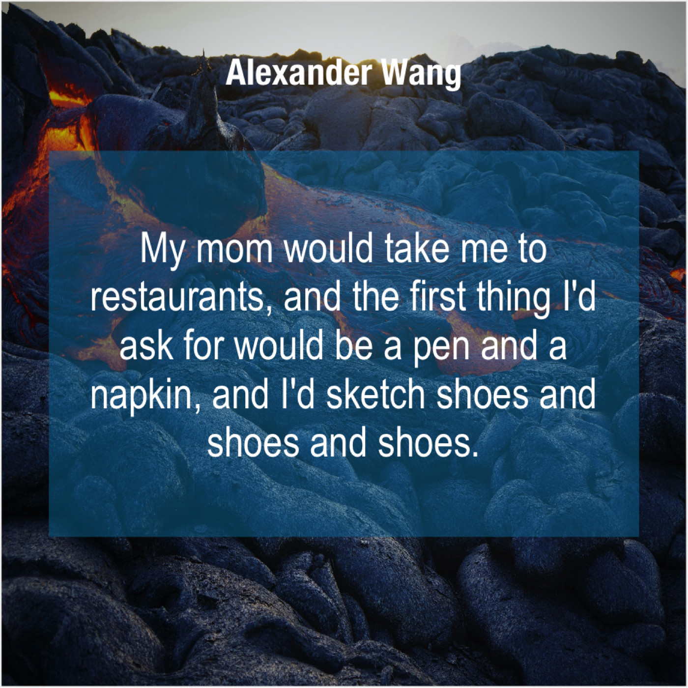 Alexander Wang Alexander Wang – My mom would take me… November 16, 2018 admin “My mom would take me to restaurants, and the first thing I’d ask for would be a pen and a napkin, and I’d sketch shoes and shoes and shoes.”-Alexander Wang