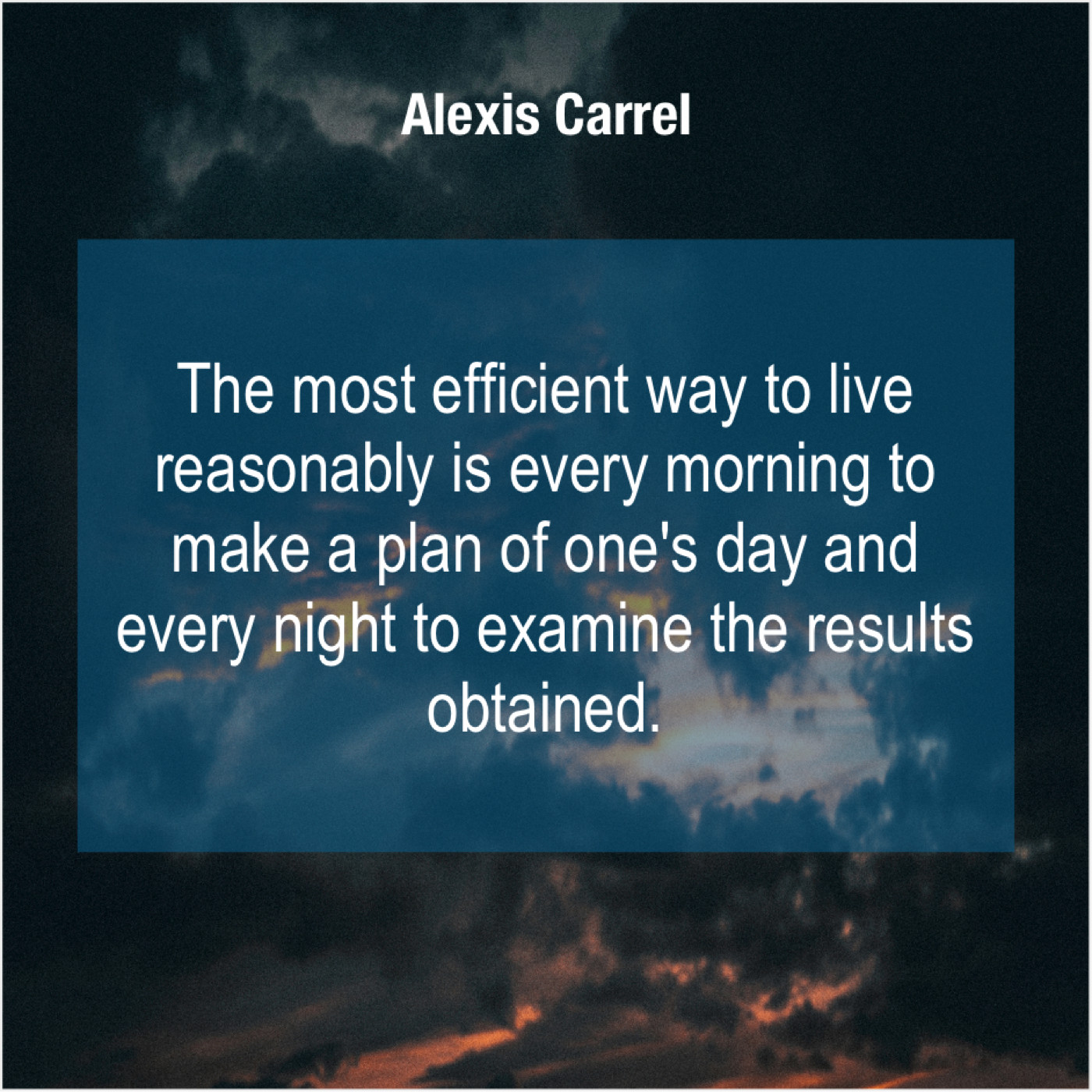 “The most efficient way to live reasonably is every morning to make a plan of one’s day and every night to examine the results obtained.”