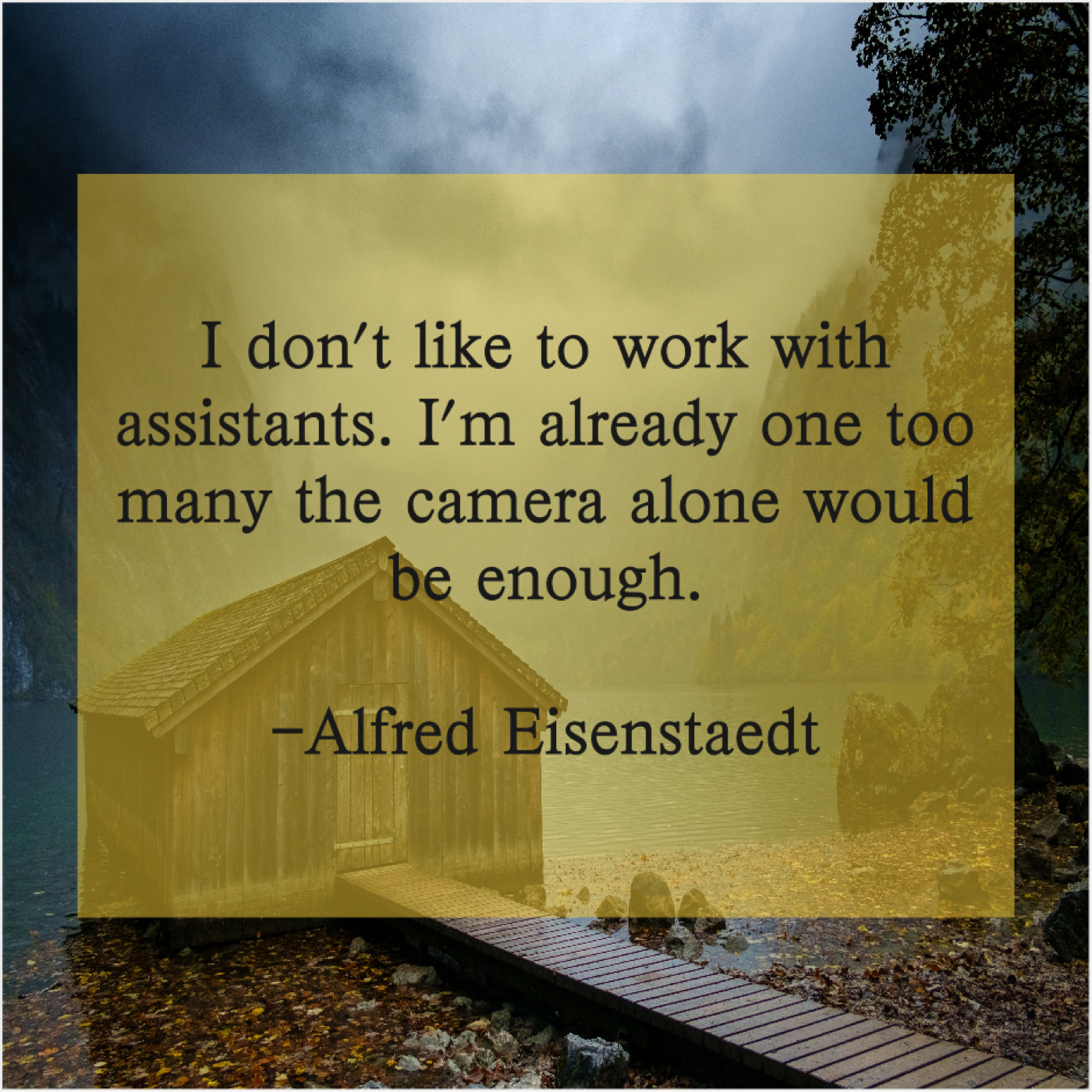Alfred Eisenstaedt Alfred Eisenstaedt – I don’t like to work… September 28, 2019 admin “I don’t like to work with assistants. I’m already one too many the camera alone would be enough.”-Alfred Eisenstaedt