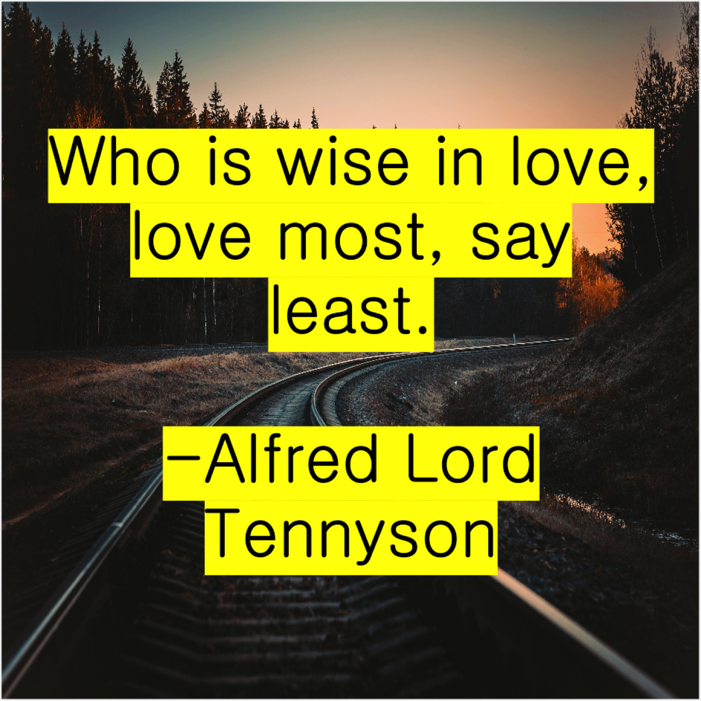 Alfred Lord Tennyson Alfred Lord Tennyson – Who is wise in love… May 9, 2019 admin “Who is wise in love, love most, say least.”-Alfred Lord Tennyson