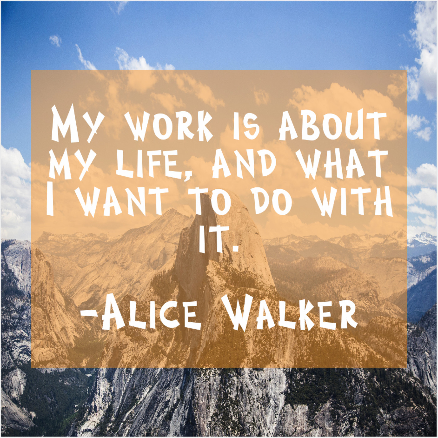 Alice Walker Alice Walker – My work is about my… October 2, 2019 admin “My work is about my life, and what I want to do with it.”-Alice Walker