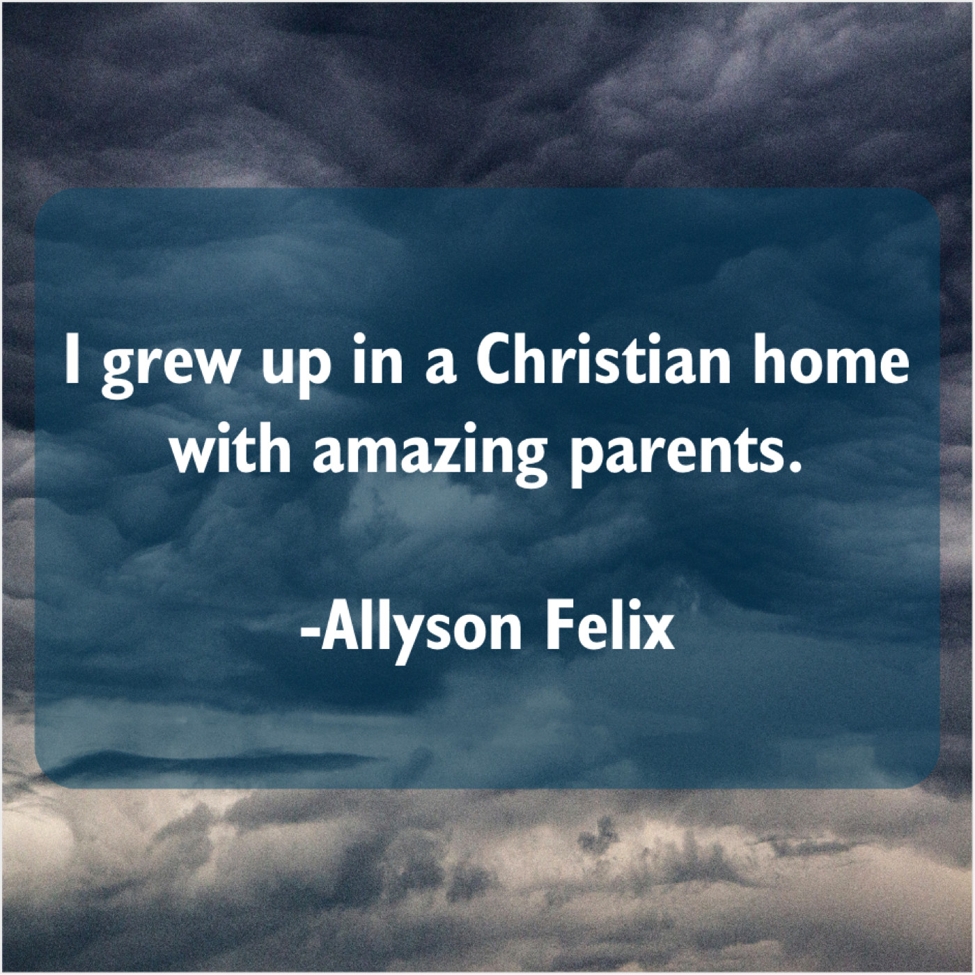 Allyson Felix Allyson Felix – I grew up in a… October 19, 2019 admin “I grew up in a Christian home with amazing parents.”-Allyson Felix
