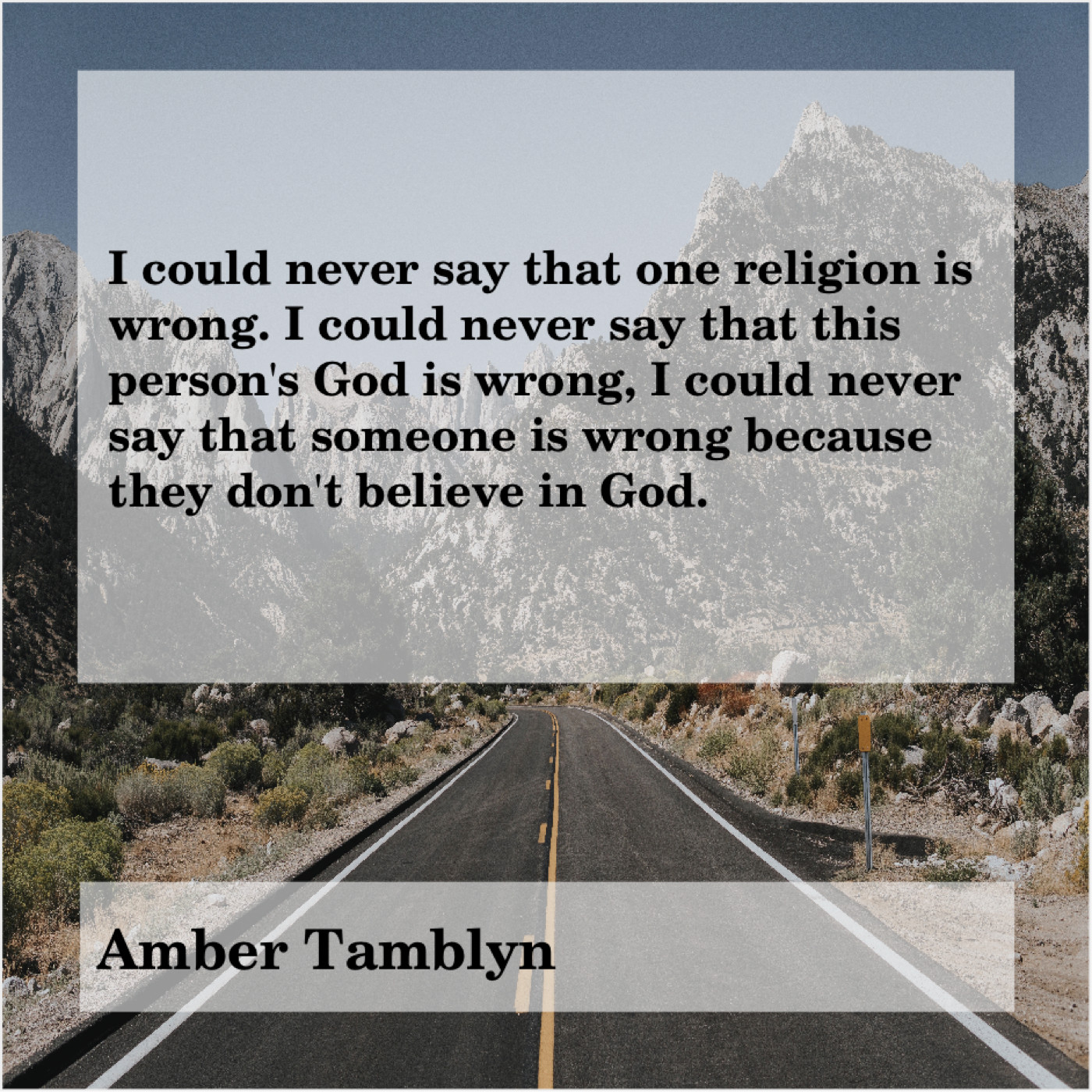 Amber Tamblyn Amber Tamblyn – I could never say that… September 7, 2019 admin “I could never say that one religion is wrong. I could never say that this person’s God is wrong, I could never say that someone is wrong because they don’t believe in God.”-Amber Tamblyn