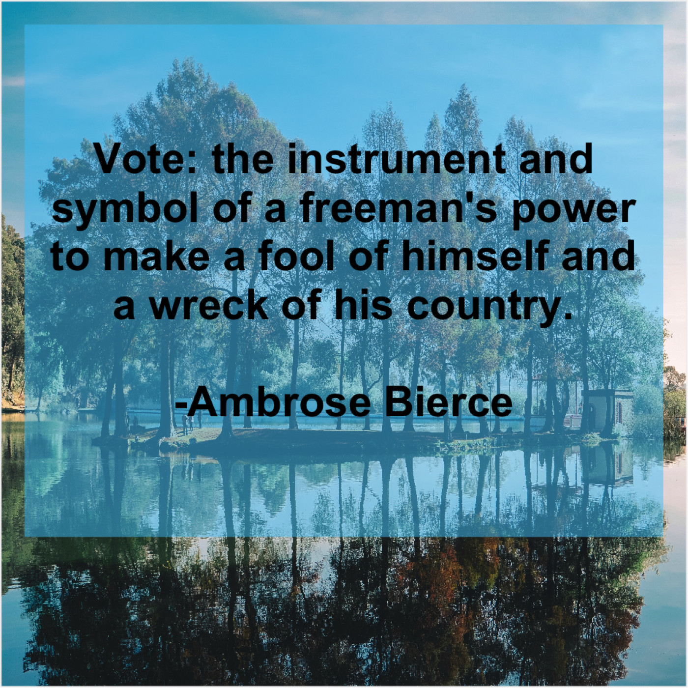 Ambrose Bierce Ambrose Bierce – Vote: the instrument and symbol… June 30, 2019 admin “Vote: the instrument and symbol of a freeman’s power to make a fool of himself and a wreck of his country.”-Ambrose Bierce
