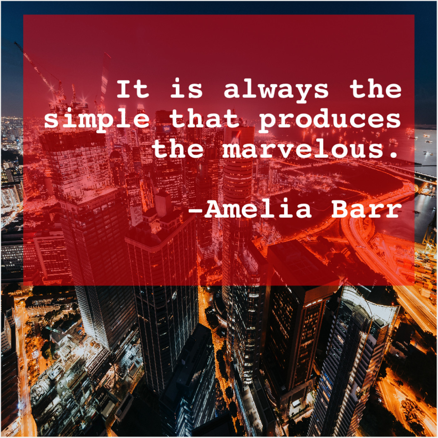 Amelia Barr Amelia Barr – It is always the simple… March 4, 2019 admin “It is always the simple that produces the marvelous.”-Amelia Barr