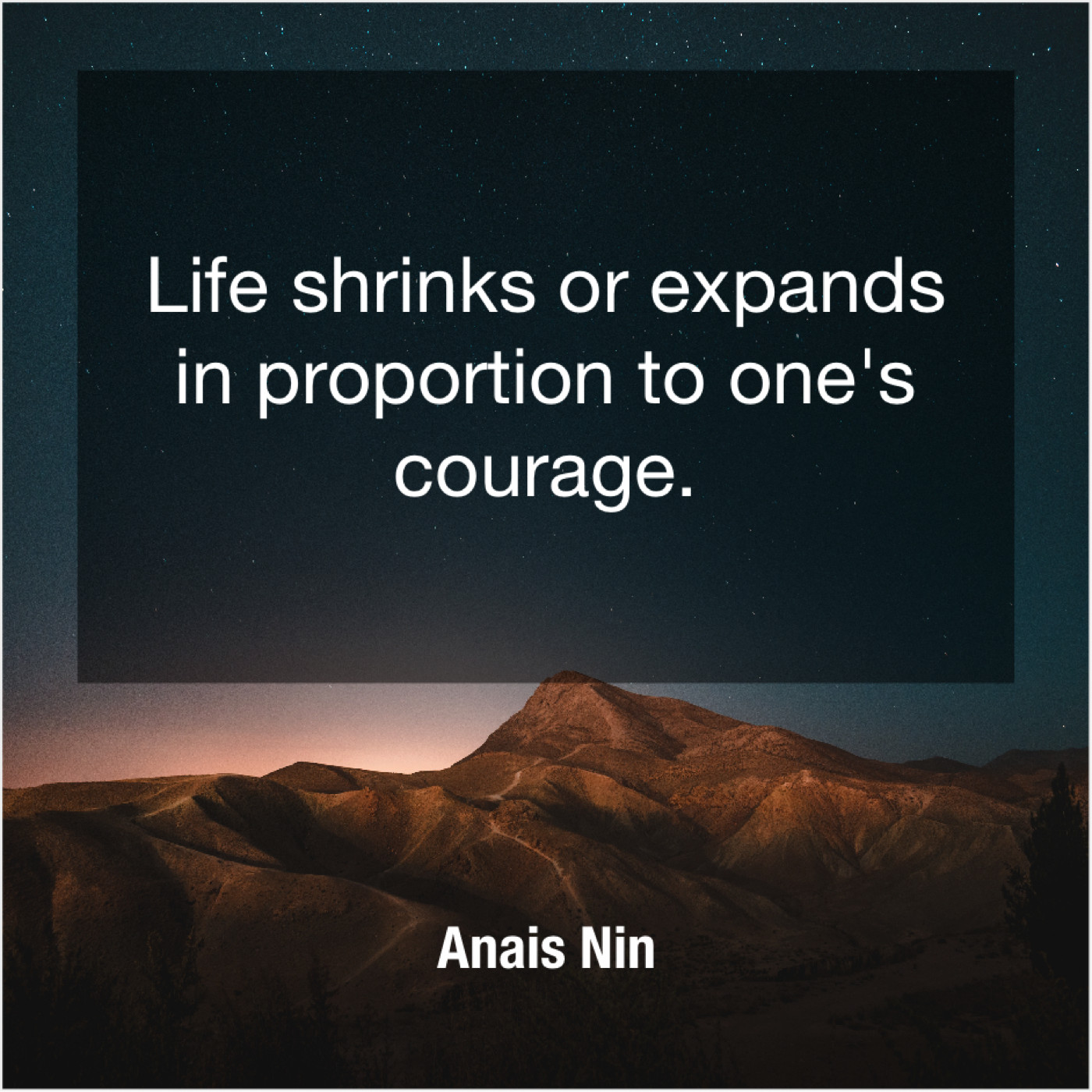 Anais Nin Anais Nin – Life shrinks or expands in… July 2, 2019 admin “Life shrinks or expands in proportion to one’s courage.”-Anais Nin
