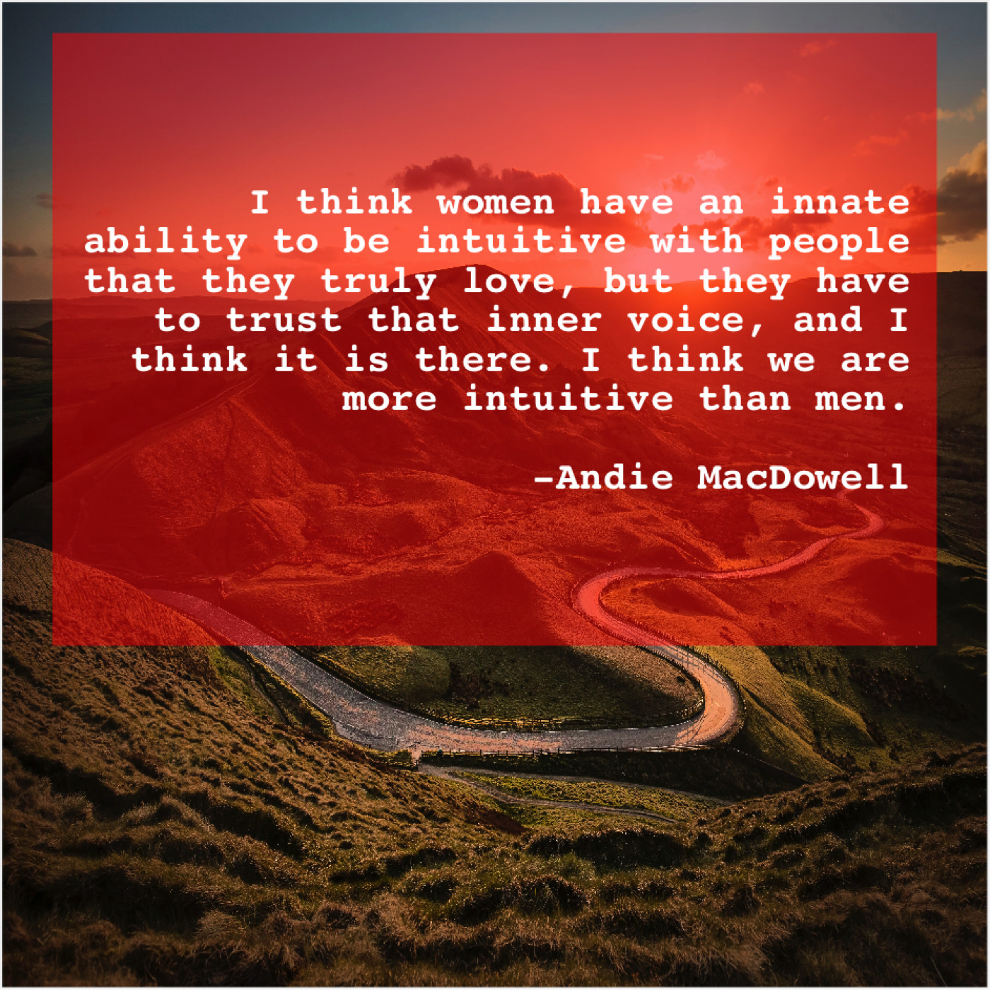 Andie MacDowell Andie MacDowell – I think women have an… March 18, 2019 admin “I think women have an innate ability to be intuitive with people that they truly love, but they have to trust that inner voice, and I think it is there. I think we are more intuitive than men.”-Andie MacDowell
