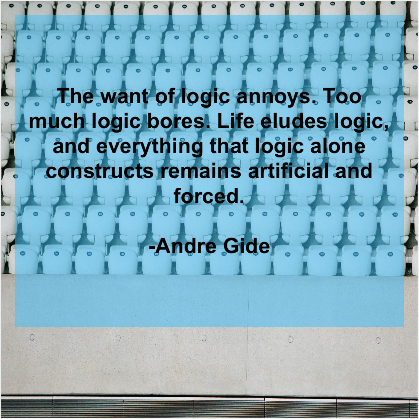 Andre Gide Andre Gide – The want of logic annoys… January 26, 2019 admin “The want of logic annoys. Too much logic bores. Life eludes logic, and everything that logic alone constructs remains artificial and forced.”-Andre Gide