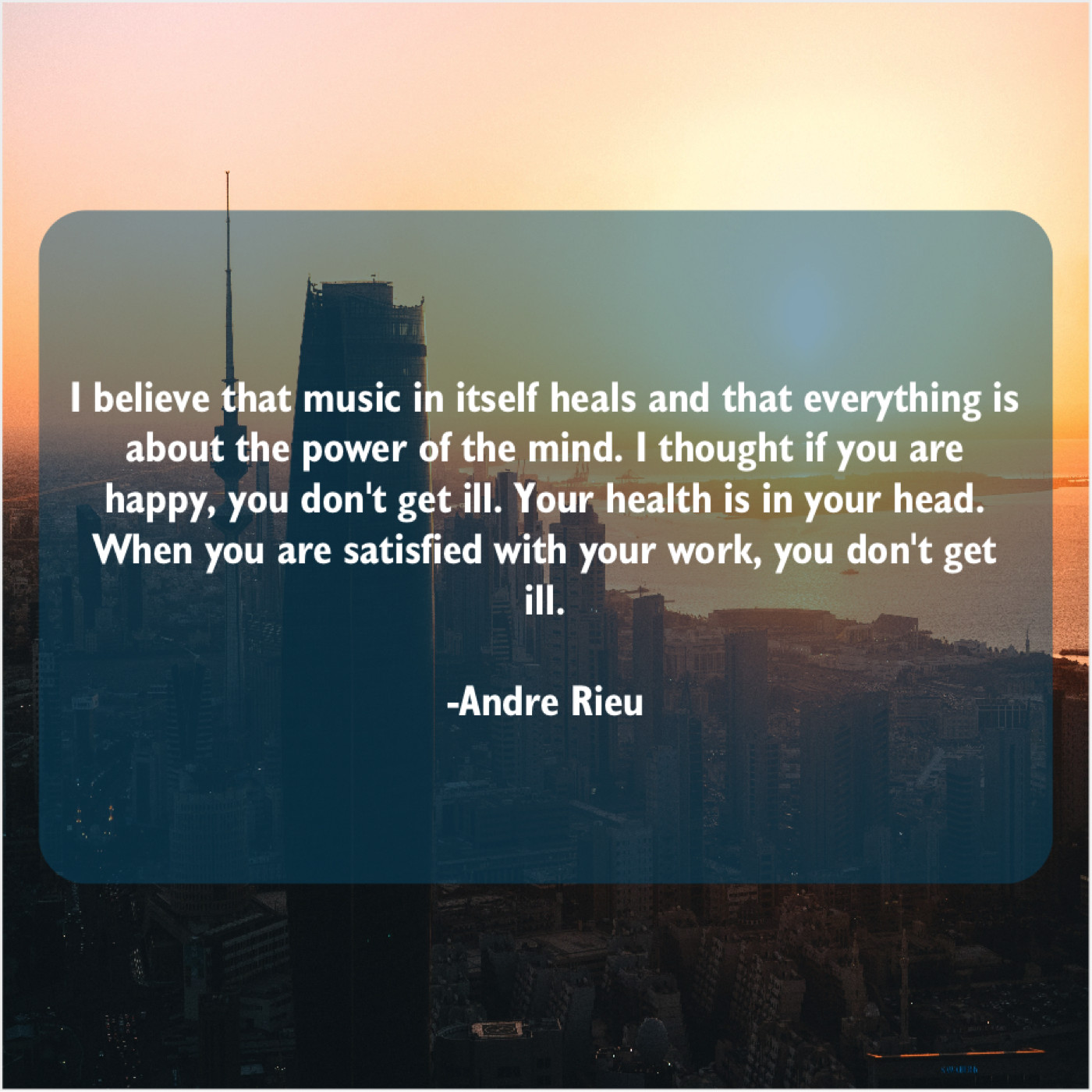 “I believe that music in itself heals and that everything is about the power of the mind. I thought if you are happy, you don’t get ill. Your health is in your head. When you are satisfied with your work, you don’t get ill.”