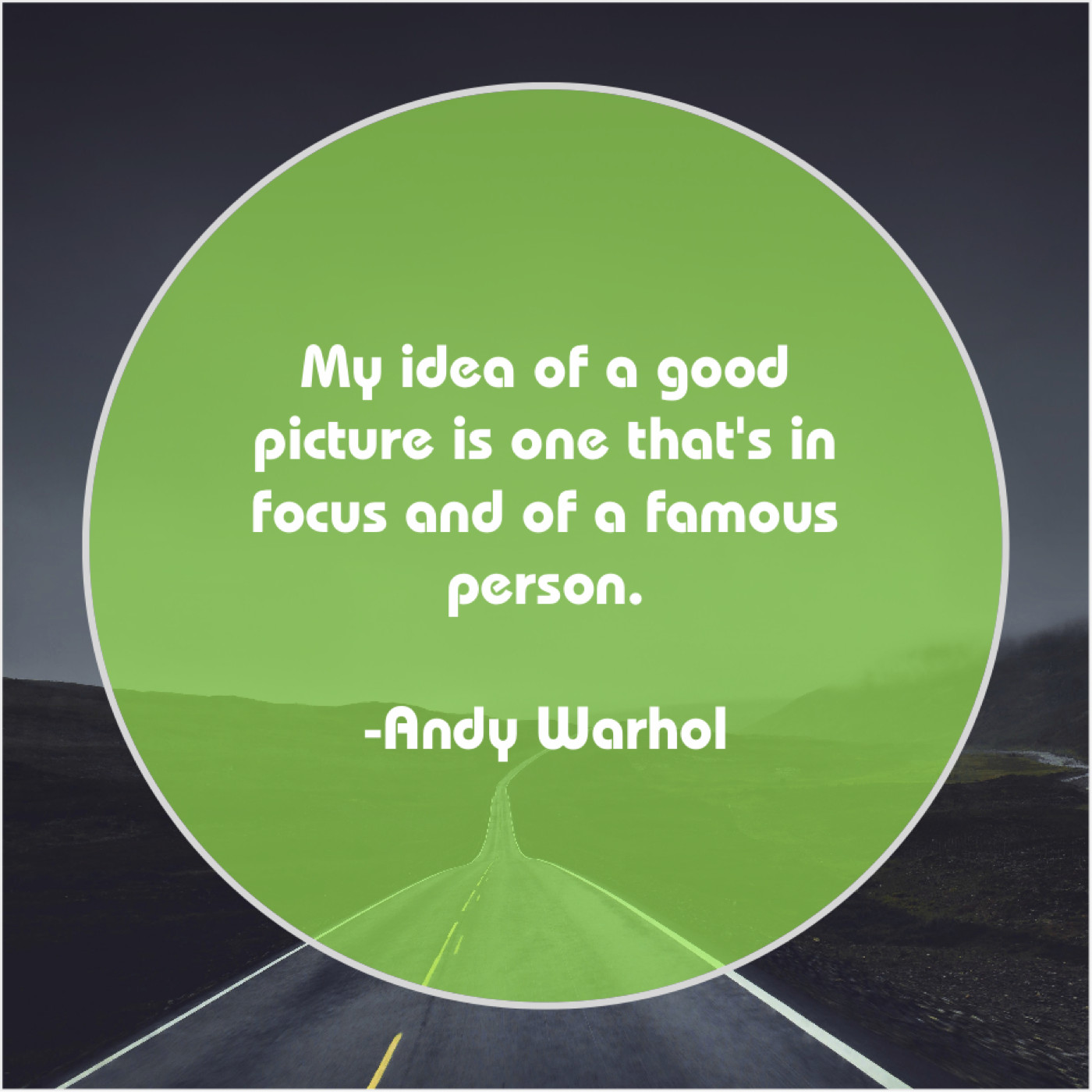 Andy Warhol Andy Warhol – My idea of a good… August 2, 2019 admin “My idea of a good picture is one that’s in focus and of a famous person.”-Andy Warhol