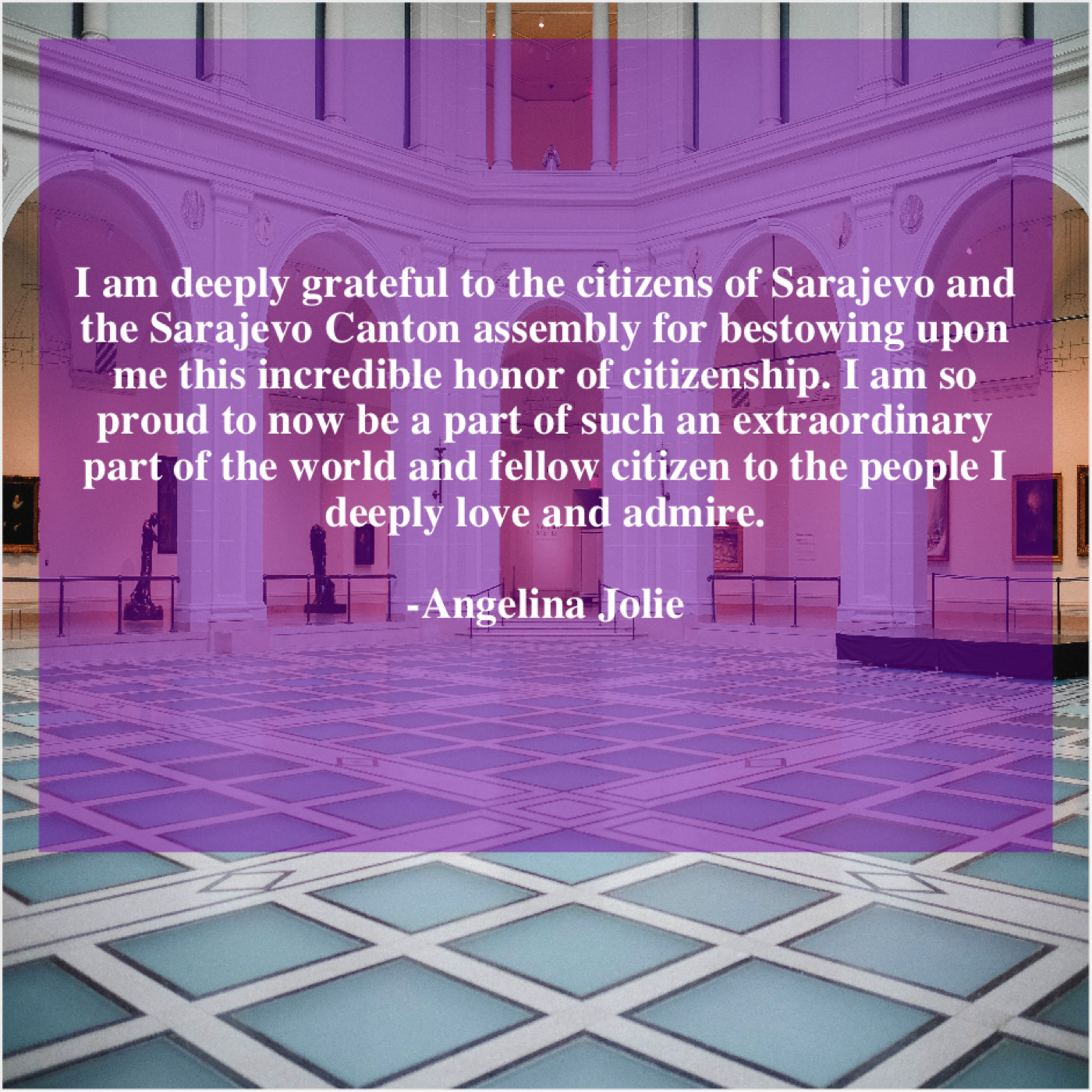 “I am deeply grateful to the citizens of Sarajevo and the Sarajevo Canton assembly for bestowing upon me this incredible honor of citizenship. I am so proud to now be a part of such an extraordinary part of the world and fellow citizen to the people I deeply love and admire.”