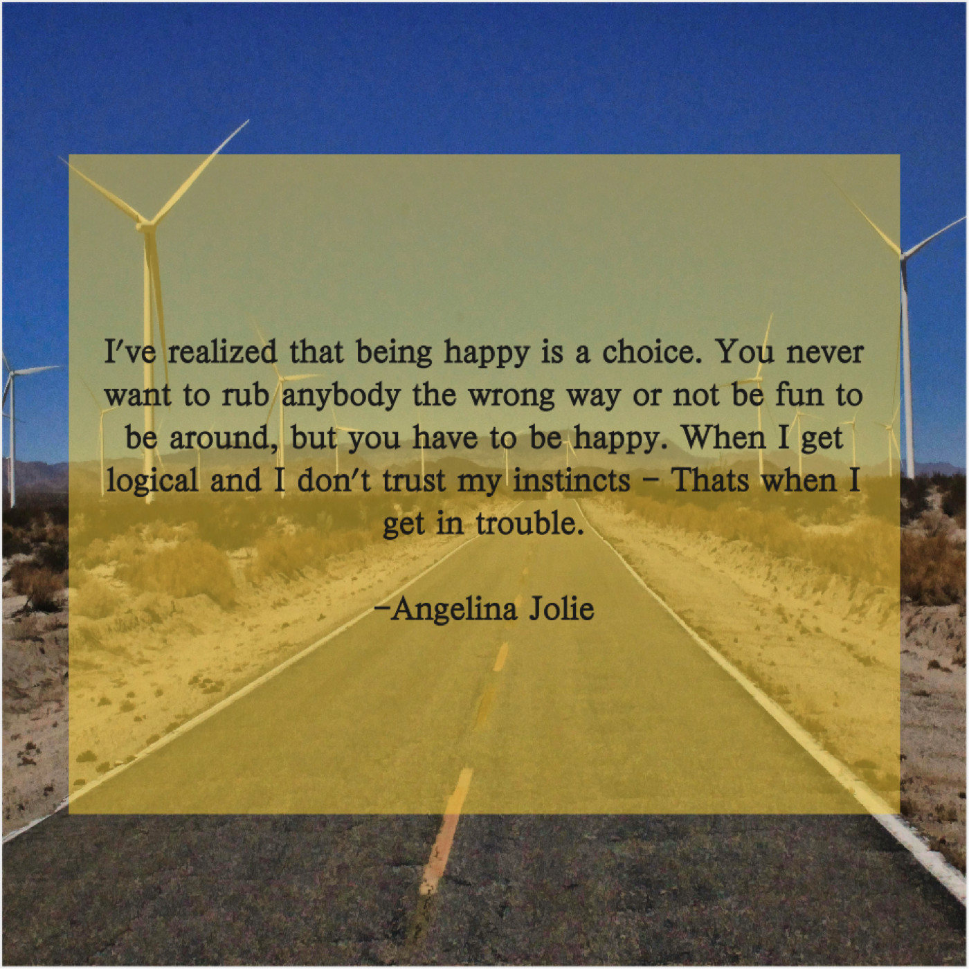 “I’ve realized that being happy is a choice. You never want to rub anybody the wrong way or not be fun to be around, but you have to be happy. When I get logical and I don’t trust my instincts – Thats when I get in trouble.”