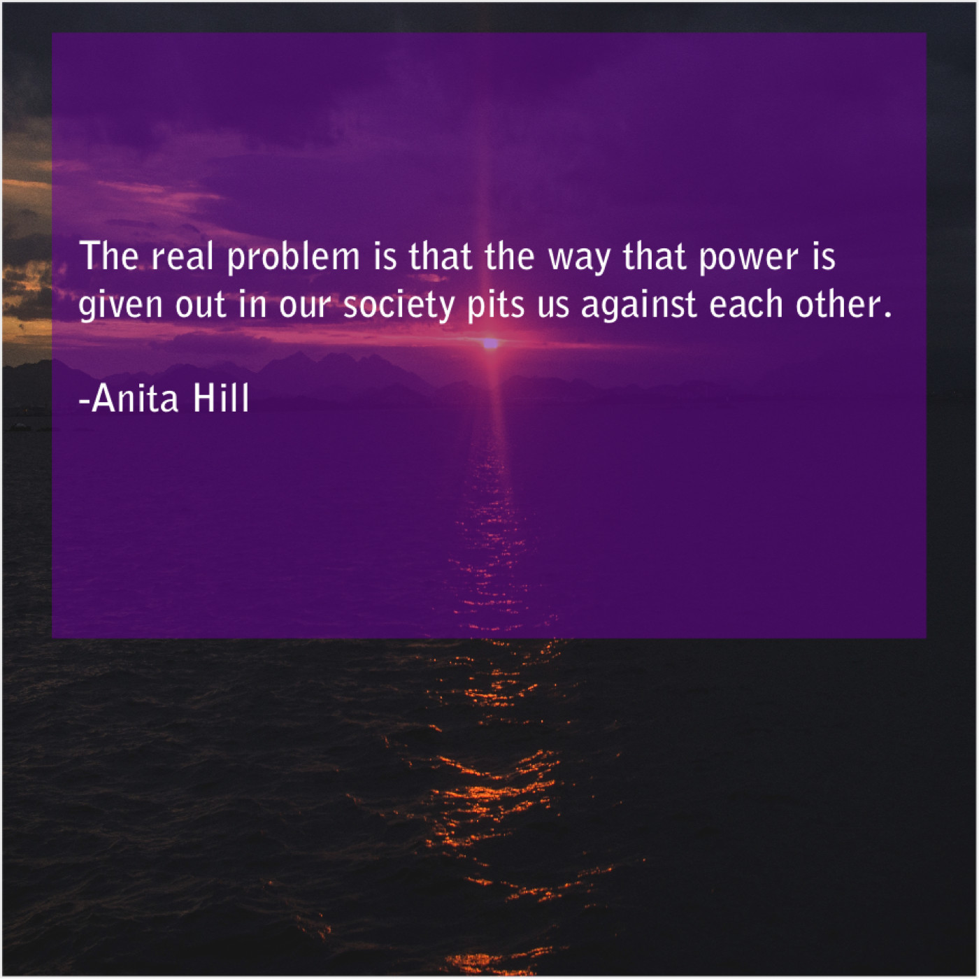 Anita Hill Anita Hill – The real problem is that… July 16, 2019 admin “The real problem is that the way that power is given out in our society pits us against each other.”-Anita Hill