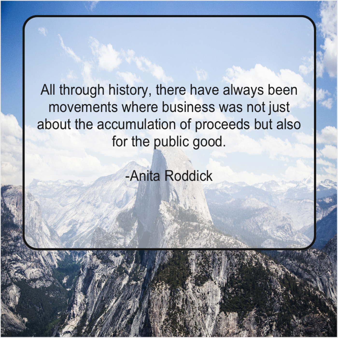 Anita Roddick Anita Roddick – All through history, there have… August 7, 2019 admin “All through history, there have always been movements where business was not just about the accumulation of proceeds but also for the public good.”-Anita Roddick