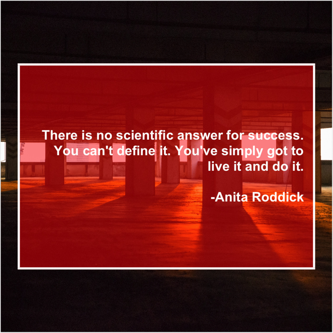 Anita Roddick Anita Roddick – There is no scientific answer… July 25, 2019 admin “There is no scientific answer for success. You can’t define it. You’ve simply got to live it and do it.”-Anita Roddick
