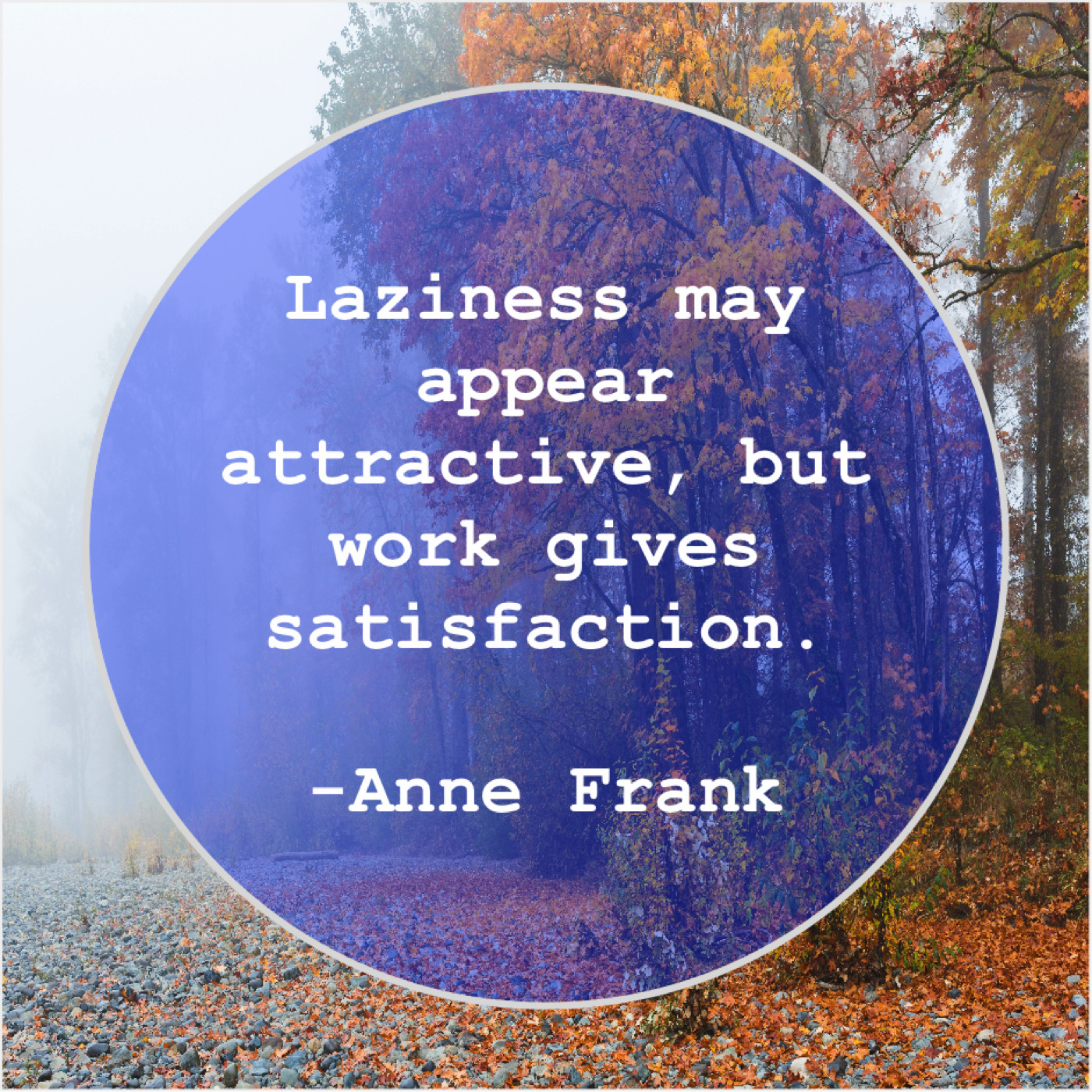 Anne Frank Anne Frank – Laziness may appear attractive, but… May 6, 2019 admin “Laziness may appear attractive, but work gives satisfaction.”-Anne Frank