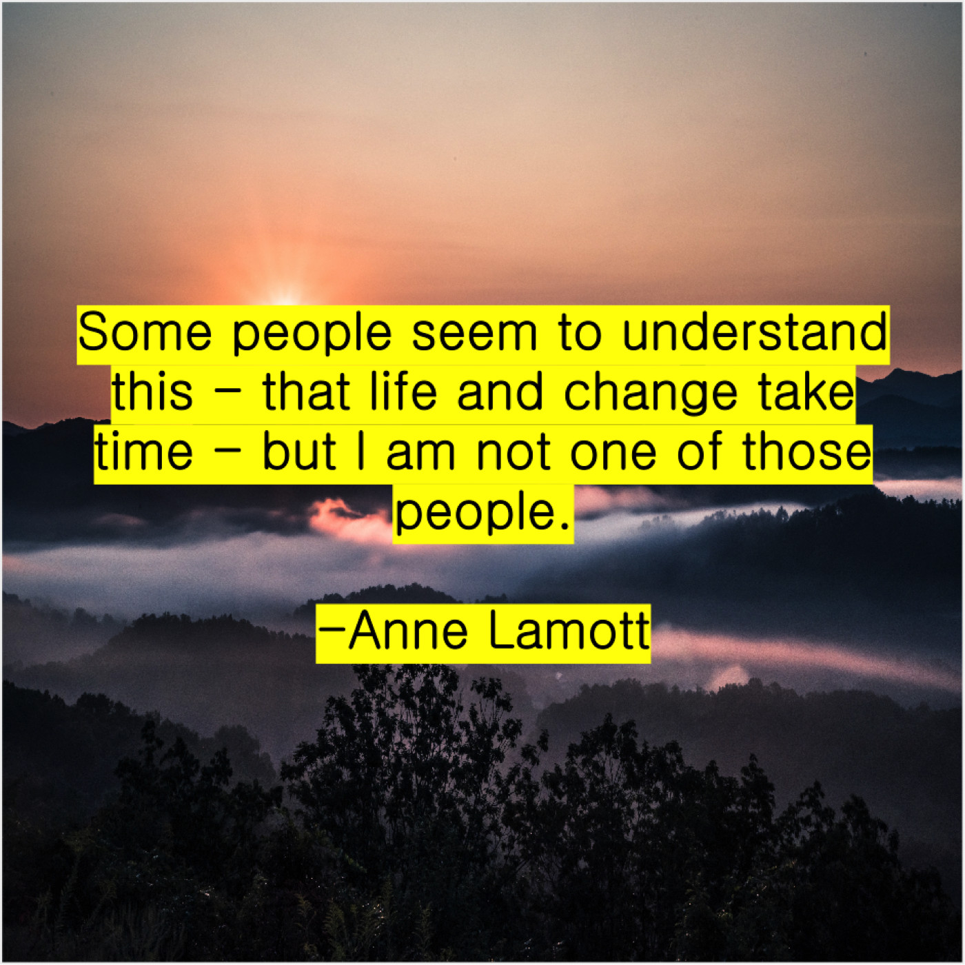 Anne Lamott Anne Lamott – Some people seem to understand… December 19, 2018 admin “Some people seem to understand this – that life and change take time – but I am not one of those people.”-Anne Lamott