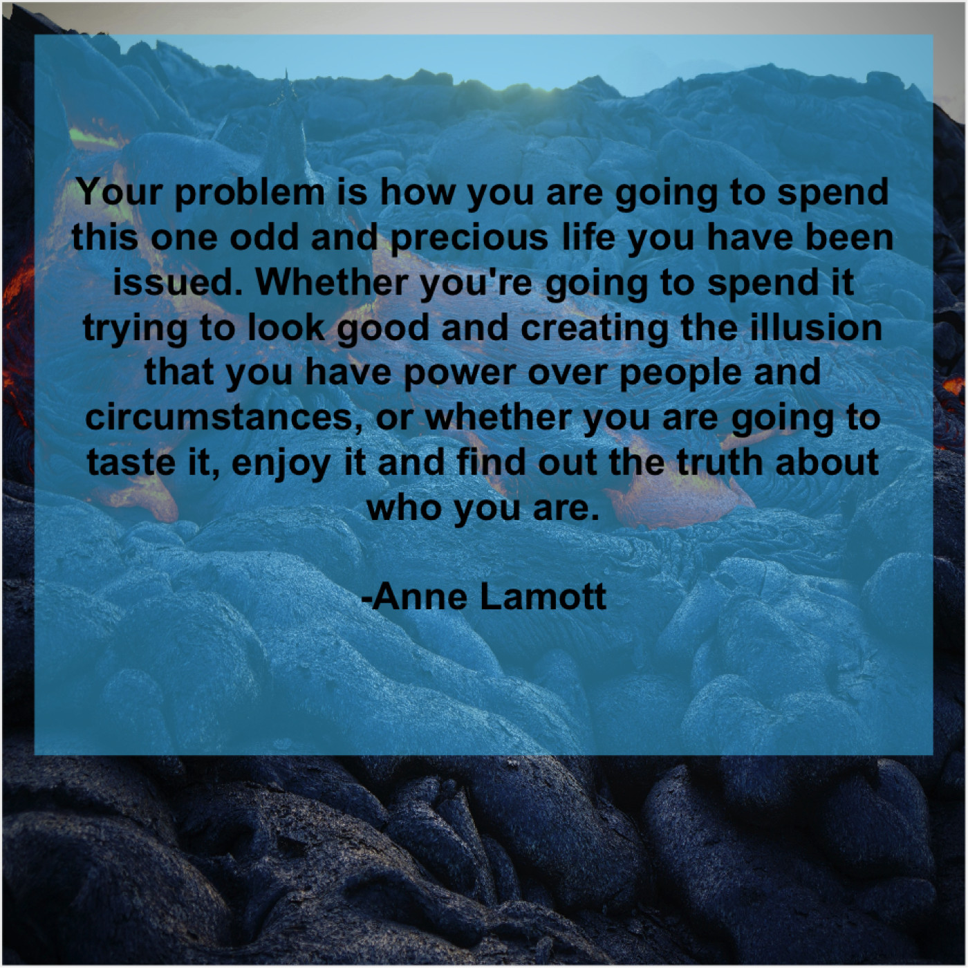 “Your problem is how you are going to spend this one odd and precious life you have been issued. Whether you’re going to spend it trying to look good and creating the illusion that you have power over people and circumstances, or whether you are going to taste it, enjoy it and find out the truth about who you are.”