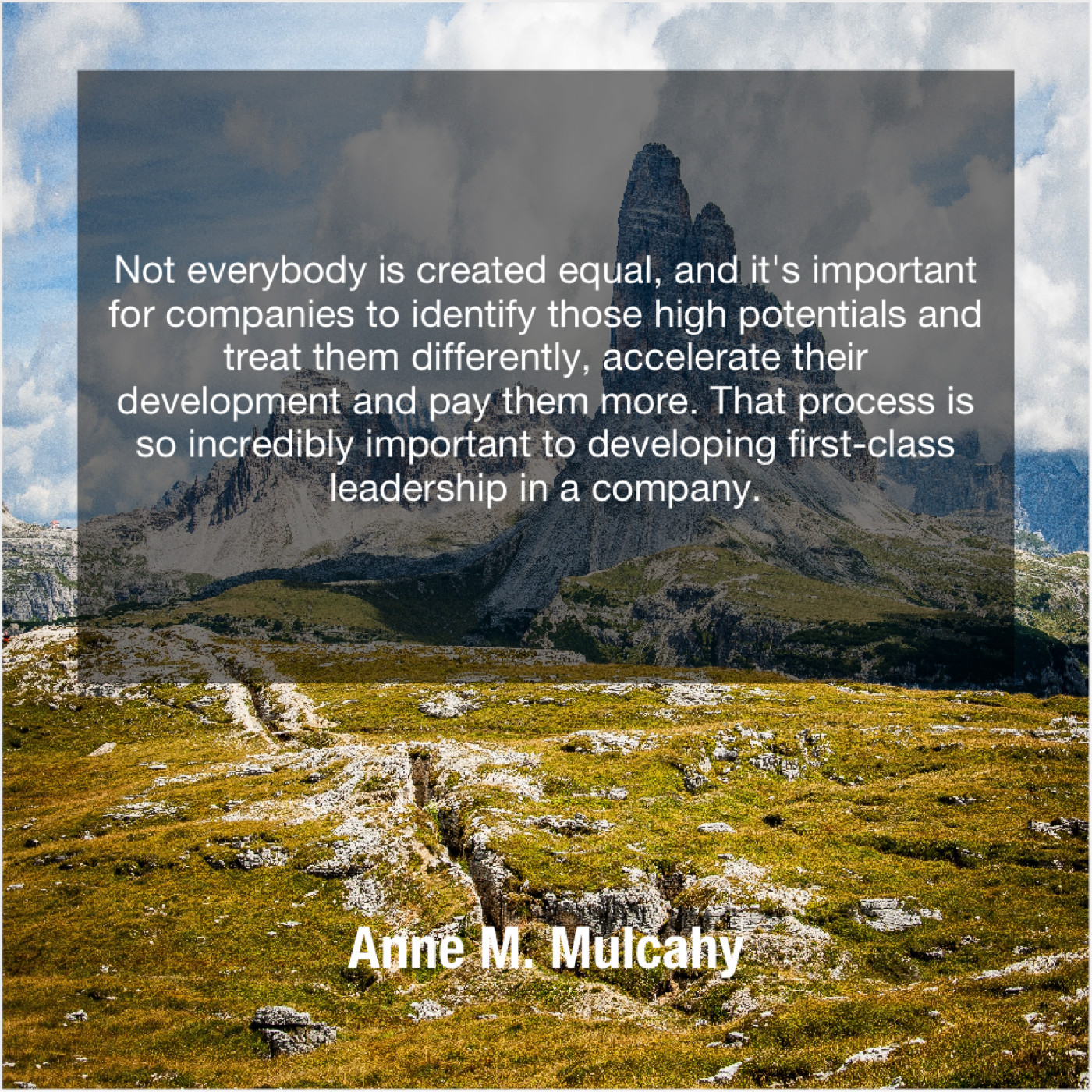 “Not everybody is created equal, and it’s important for companies to identify those high potentials and treat them differently, accelerate their development and pay them more. That process is so incredibly important to developing first-class leadership in a company.”