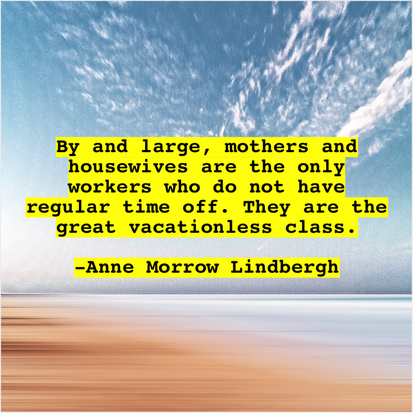 Anne Morrow Lindbergh Anne Morrow Lindbergh – By and large, mothers and… September 28, 2019 admin “By and large, mothers and housewives are the only workers who do not have regular time off. They are the great vacationless class.”-Anne Morrow Lindbergh